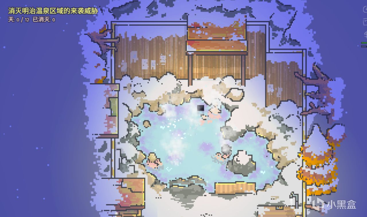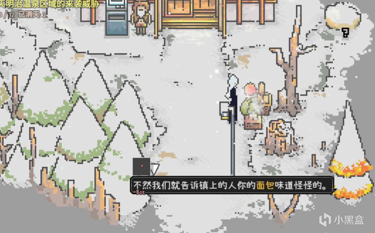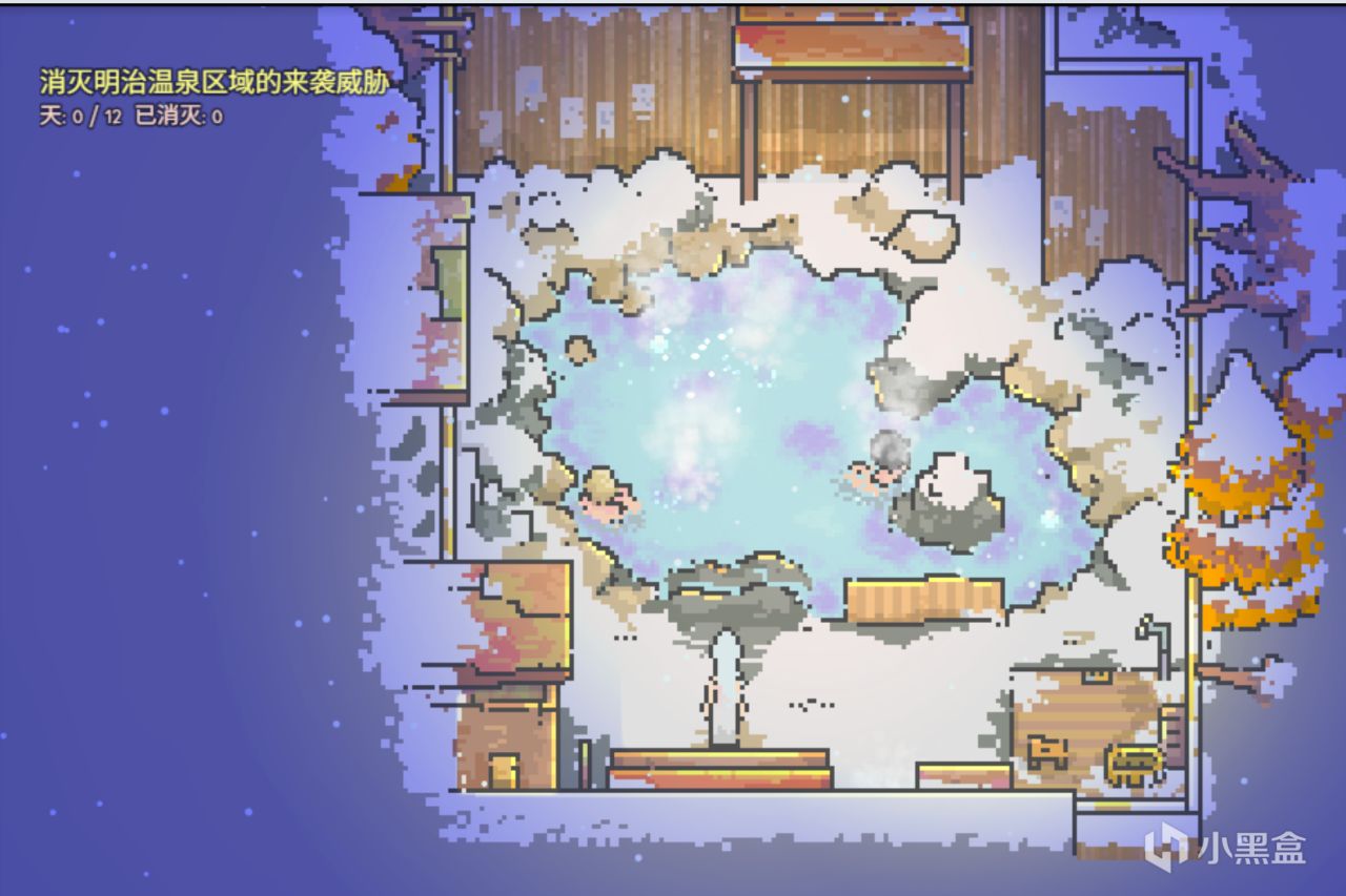 打開新的Demo,果然還是純正的像素,還是一樣的好看。在最早的Demo裏,茜心心念念要喫的麻團終於出場了,茜收到任務來到了來泡溫泉了,哦,不對!是來消滅溫泉區的怪物!是公事!絕對不是來休閒泡溫泉的!
