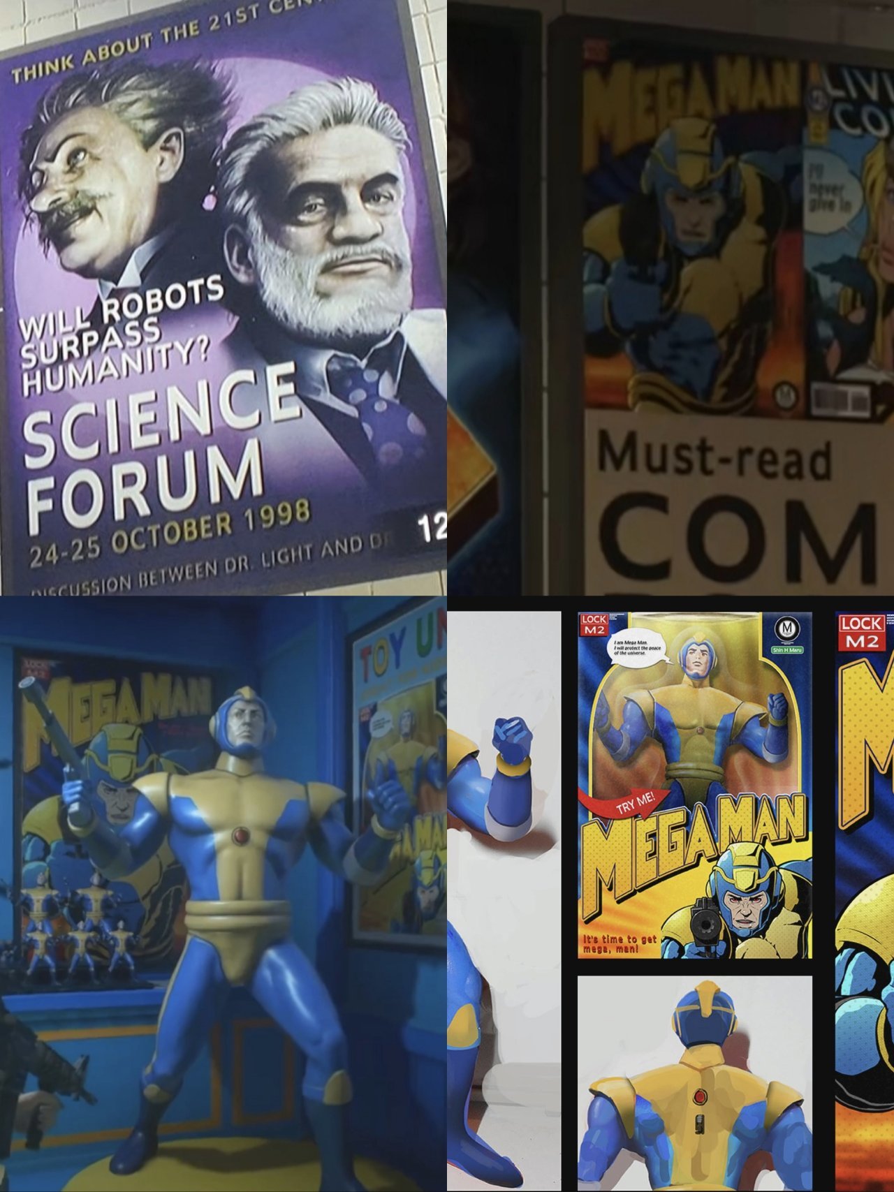 左上是莱特和威利博士,右上则是洛克人的海报,左下的玩具店里直接摆了一大堆洛克人