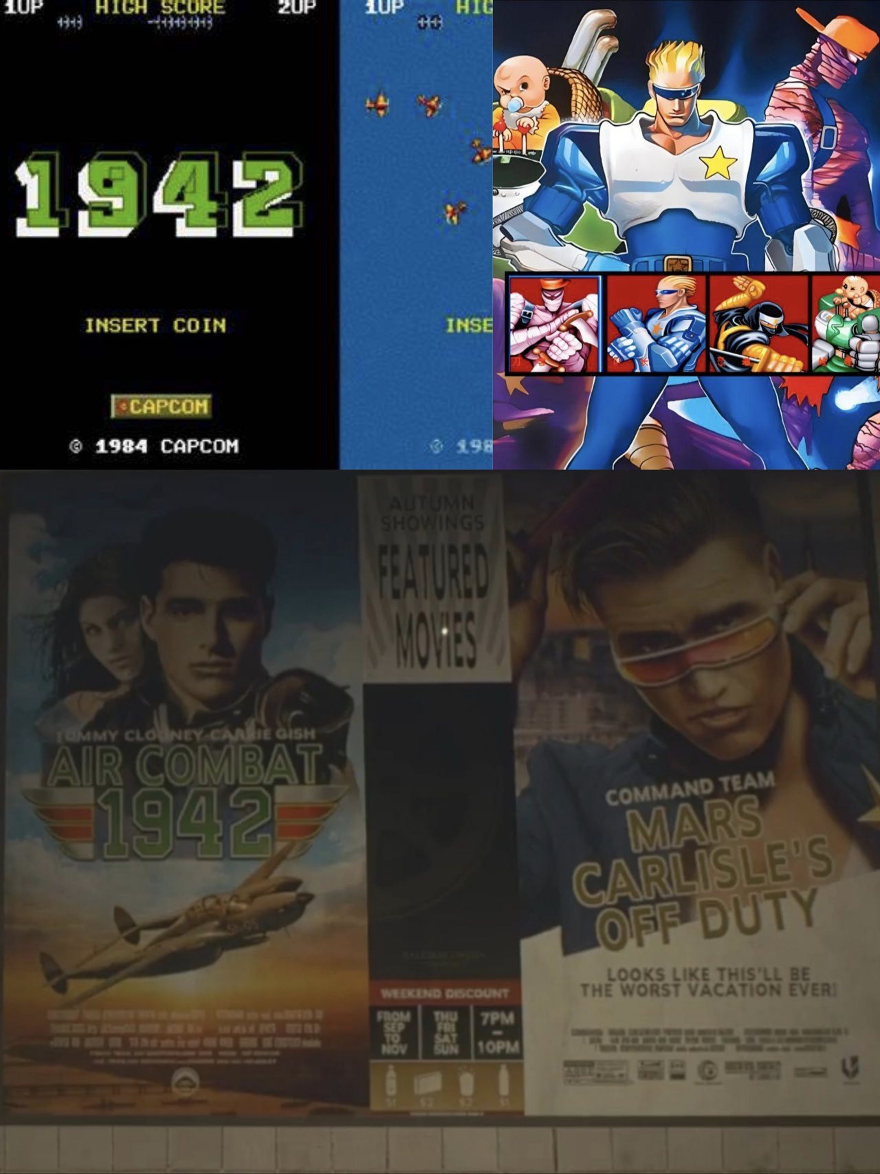 下图海报左边是致敬了阿汤哥经典电影《壮志凌云》以及卡普空自家游戏《1942》,右边也是卡普空街机游戏《名将》