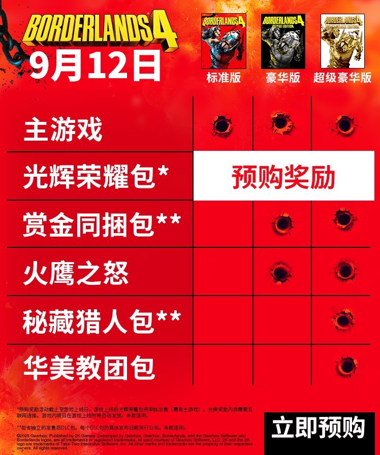 预购任意版本可获“光辉荣耀包”(角色皮肤+武器皮肤+无人机皮肤)。游戏定于9月12日登陆PC/PS5/XSX|S,Switch 2版年内推出。国区低价虽香,但DLC的“隐藏消费”和隐私扫盘危机,让玩家直呼“定价虽慈善,操作割韭菜”。