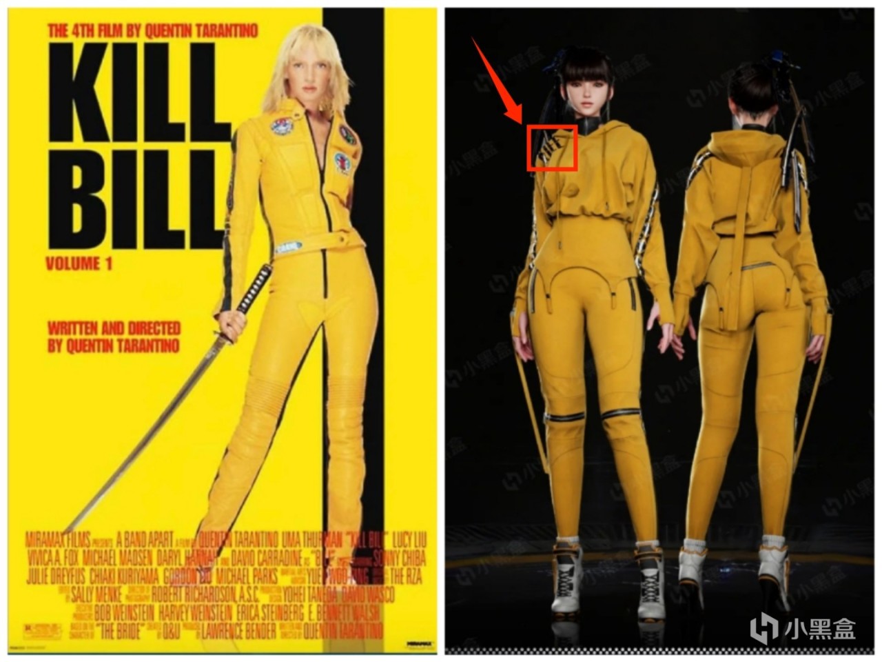 伊芙的有一套名叫”黃色運動服“中,在左上角有”KILL KILL“的英文。