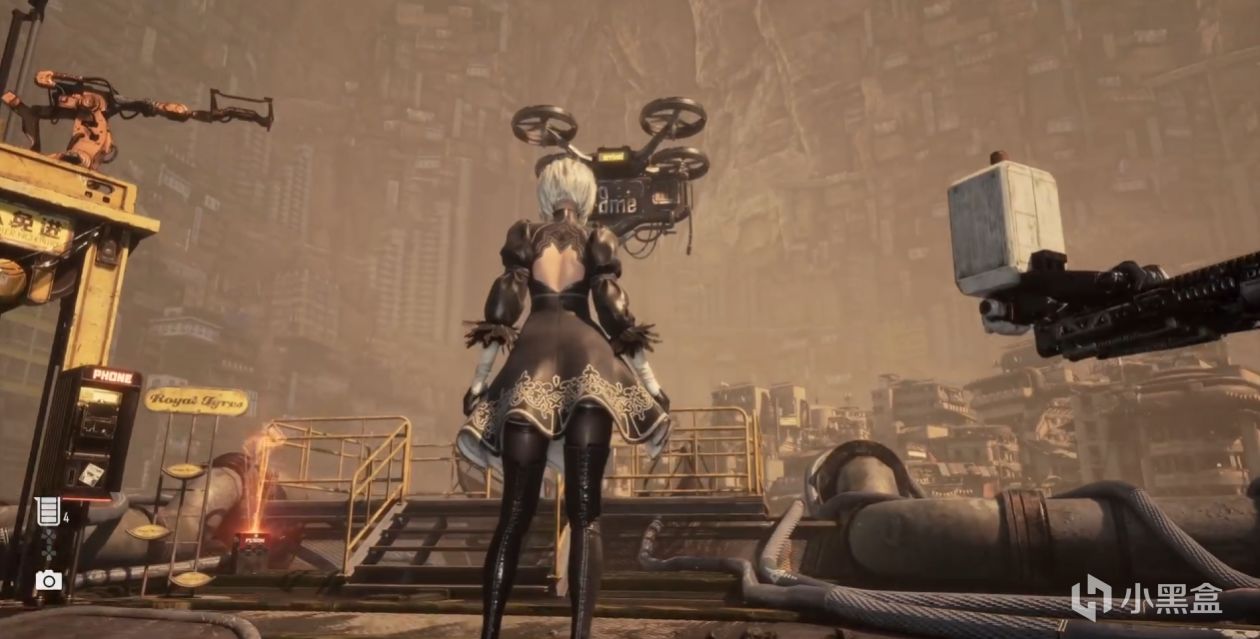 當我們穿上聯動衣服2B時,如果嘗試偷看裙底,就會觸發和尼爾中一樣的效果—玩家的視角會被一腳踢開!
