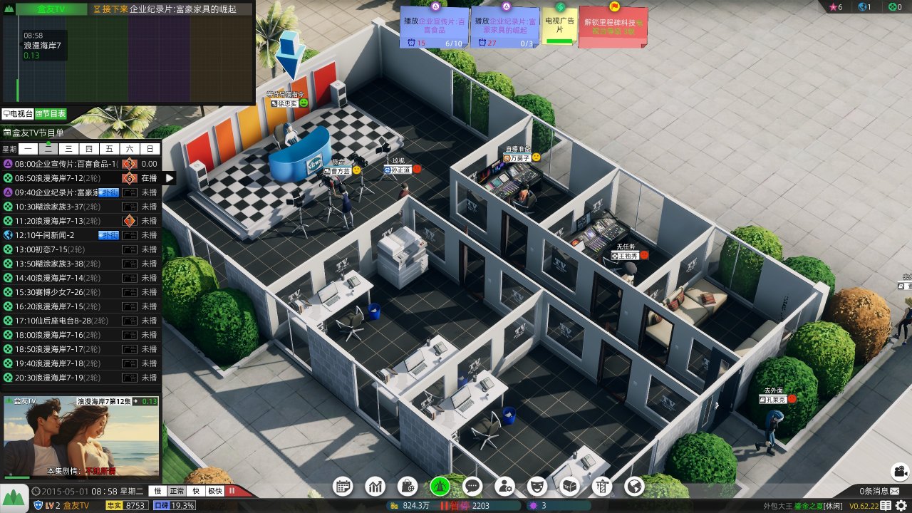 雖然電視臺模擬器這種玩法很少見,但不代表沒有吸引力。明星養成、導演模擬、員工培養、收視率商戰、自制節目、基地建造,有足夠多的玩法可以豐富內容。