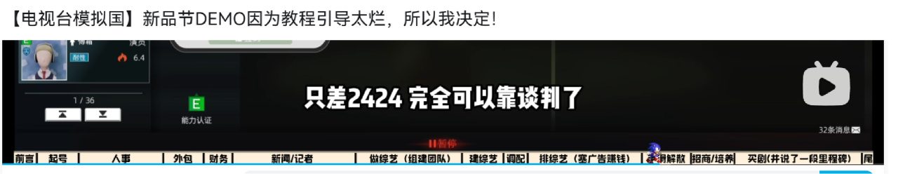 從2020年的第一條視頻,到2021年宣佈跳票重製,再到2025年上線demo,11條視頻、2.1千粉絲、25萬播放量,見證了《電視臺模擬國》及其製作人獨立開發的五年時光。