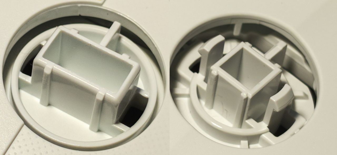 ABXY按键的按压感有点不一样,仔细看了下接触面积有微调增大一点,高度变低了,下图对比Y键能明显看出大一点,但是高度的话角度问题不好看