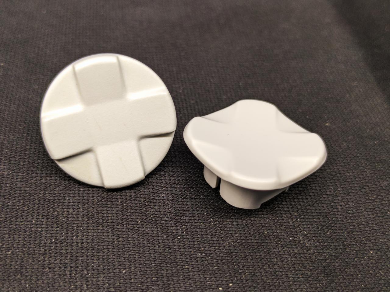 摇杆帽变小一圈现在只要把十字键卸下来,就可以直接拆面壳,摇杆帽能直接穿过去,拆面壳更方便不用再把摇杆帽拔下来,上面防滑纹理大条纹变得精细了
