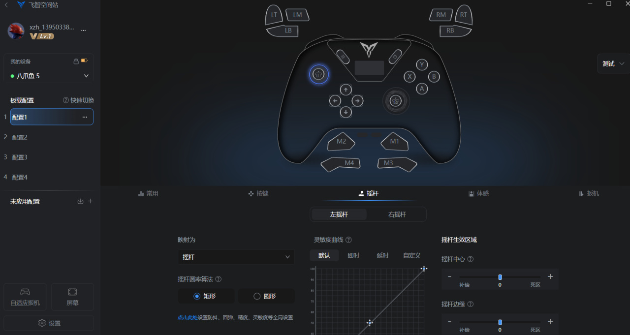这次摇杆的芯片升级了,延迟降低玩FPS游戏的话会更跟手,驱动内可以设置左右摇杆的圆或矩形调教