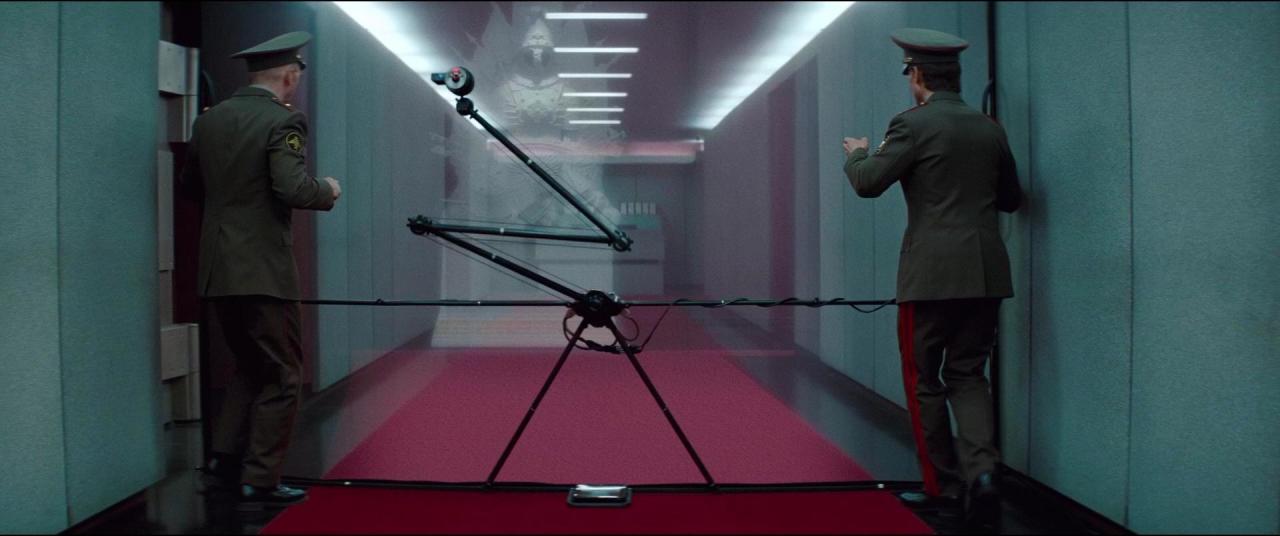 我對4還是記憶深刻的,尤其是兩場戲,一個是伊森・亨特和班吉要進入克里姆林宮檔案室。他們先用仿聲器模擬水滴聲引開警衛,隨後展開全息投影幕布。投影器材掃描環境並識別警衛眼睛位置成像,每次警衛離開,阿湯哥就推着幕布前進,靠着不斷調整圖像,最終成功騙過警衛攻進檔案室 。