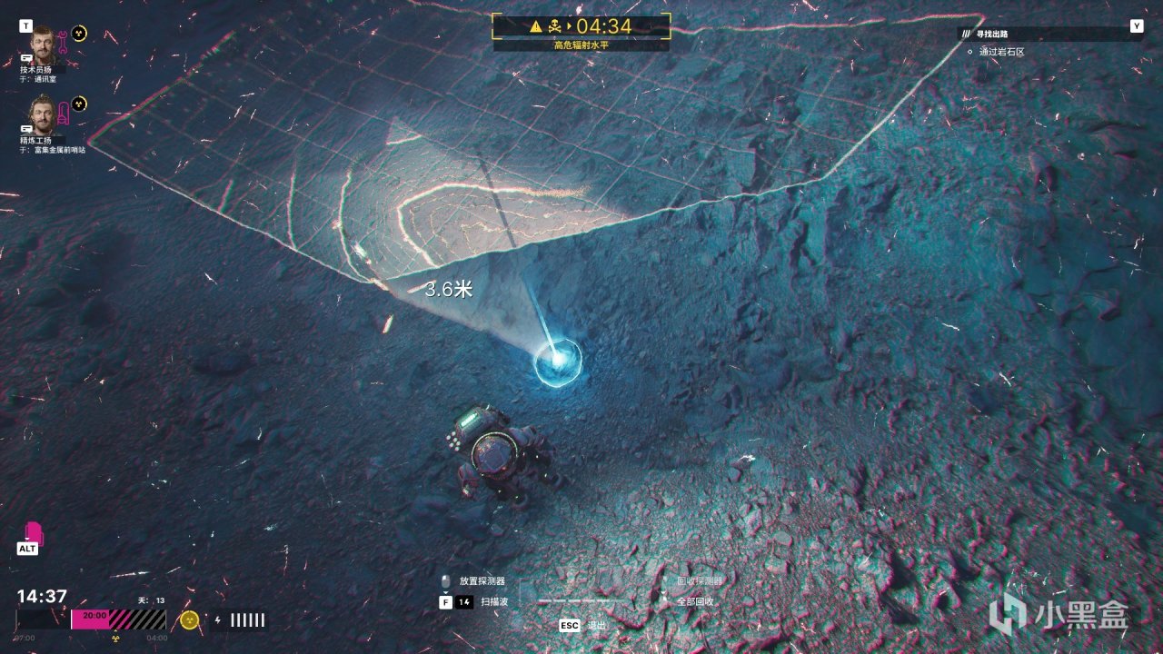 差點都忘了我們是在外星球,外出的探索收集也是十分重要的。在外星球我們不能通過太陽來簡單的判斷時間了,幸虧我們自己的計時裝置。輻射值是我們生存額一個重要指標,我們是需要在外出探索的時候儘可能的降低輻射值。輻射值充滿的時候我們並不會變異,而是直接死亡。過高的輻射值可以在建造的醫務室進行降低。而且晚上的輻射值是最高的,所以夜晚千萬不要外出。