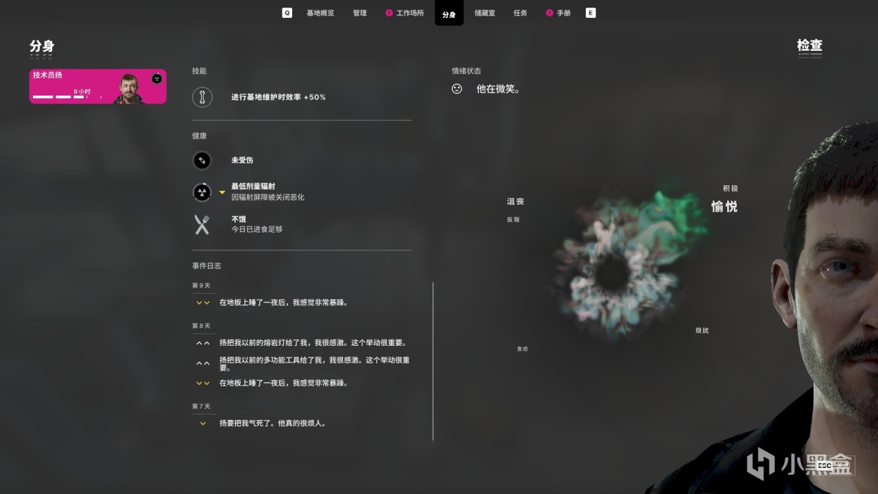 所以我們要和分身們進行友好的溝通交流,不過話說回來或許我們可能也是分身中的一員?畢竟如何區分也是一個問題,好在這是遊戲。我們可以操控的就是本體,我們需要去探查分身們的歷史記憶,遊戲內清楚的標註了發生重大事件的節點。在交流的時候投其所好就可以了。例如我的第一個分身在提到母親的時候,態度明顯的舒緩了起來。然後在我的外星餃子公式之下我們的關係明顯的好轉了起來。分身們心情好不知道能不能增加工作效率,但是心情不好是一定會出問題的。不斷的積累負面情緒,工作能力大大下降,有時候甚至還會打架。