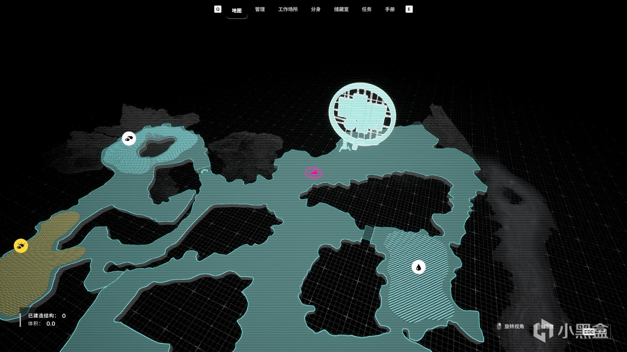 一些資源裸漏在地面,我們可以直接用電鑽獲取。一些重要的資源則是需要我們動用大型機械鑽取裝置了:我們首先要用探測器來掃瞄資源存在的大概位置,掃描完成之後我們就可以放置裝置。然後使用電纜線把裝置和基地鏈接起來就可以了。
