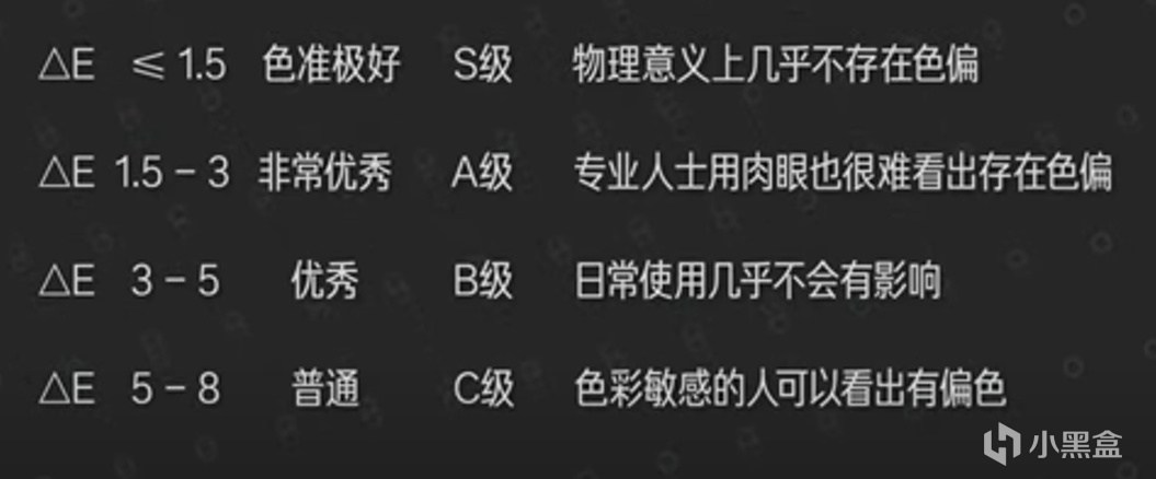 Delta E(ΔE):衡量颜色偏差的指标,数值越小越准确。