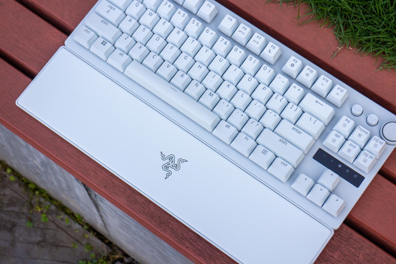 值得注意的是,雖然V3專業版採用較爲緊湊的87佈局,加上掌託的完全體佔用的桌面空間並不小,部分情況需要將磁吸掌託拆卸掉使用。