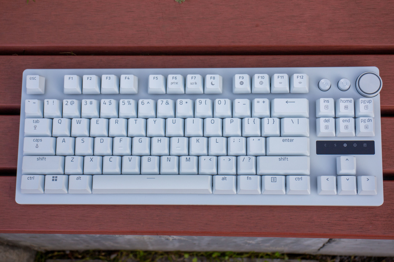 鍵盤爲標準的87佈局(TKL),砍掉數字小鍵盤,保留絕大多數功能鍵。獵魂光蛛V3的三個版本如上述所言,功能差不多,主要區別僅在配列上。