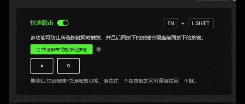 其次就是RT功能,本人在遊玩CS2習慣設置在1mm左右,手動急停會比較方便,也不容易誤觸,手指抽動一下即可快速鬆開,且觸發反方向鍵。