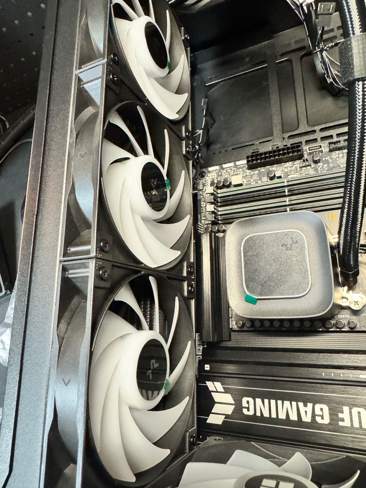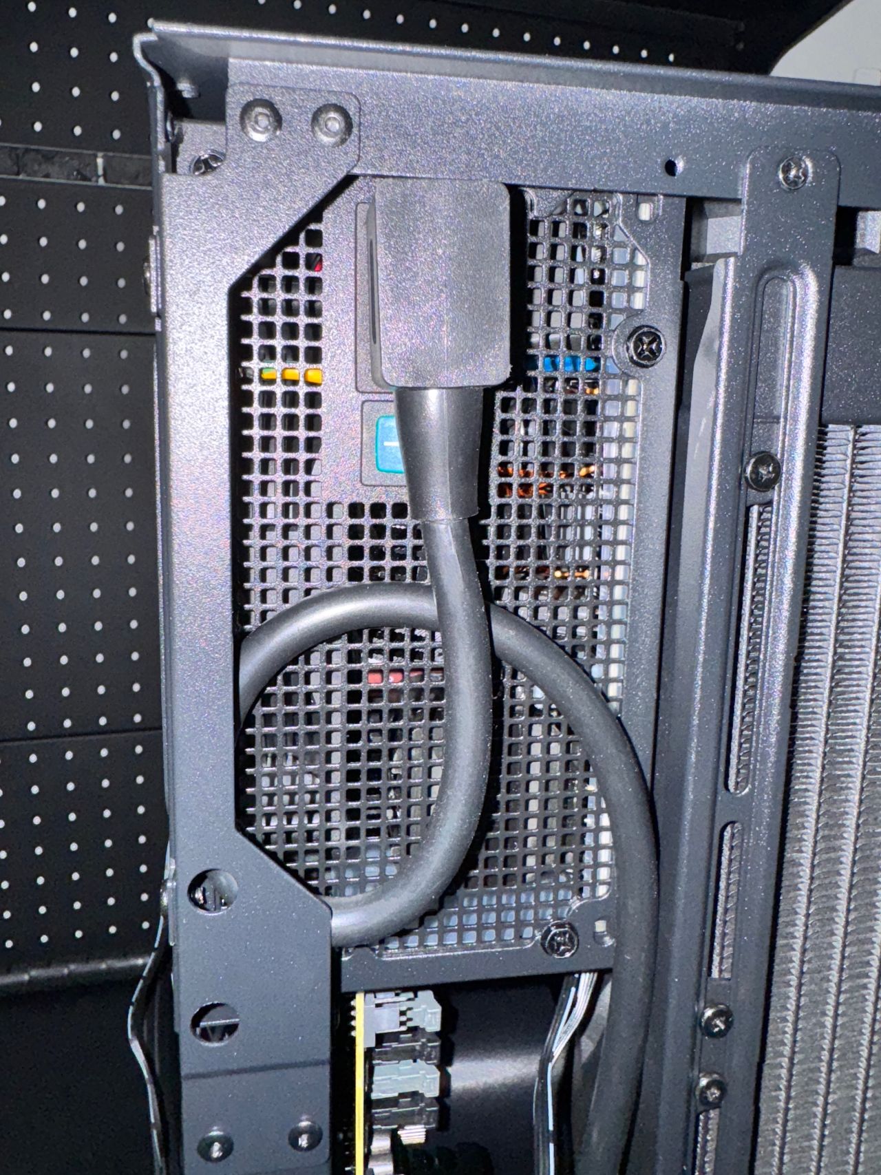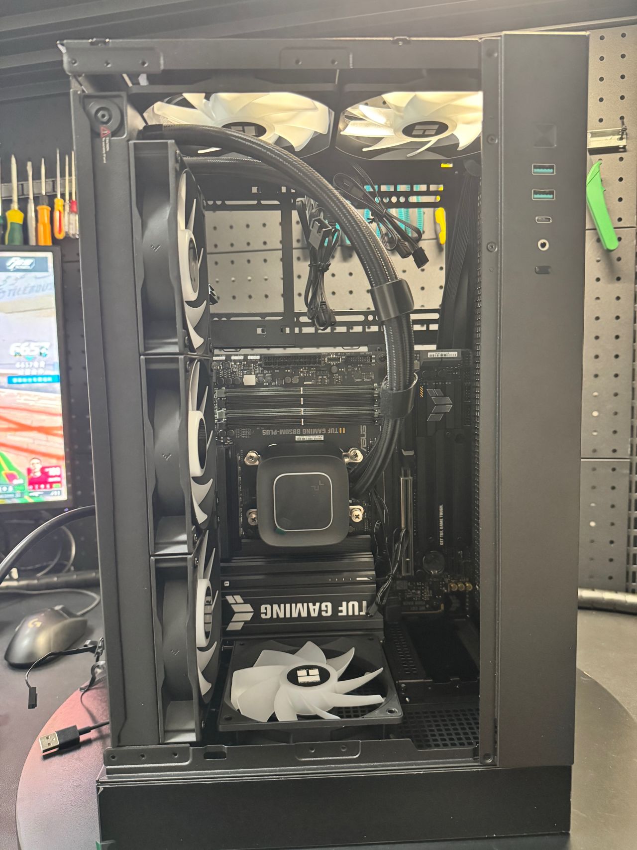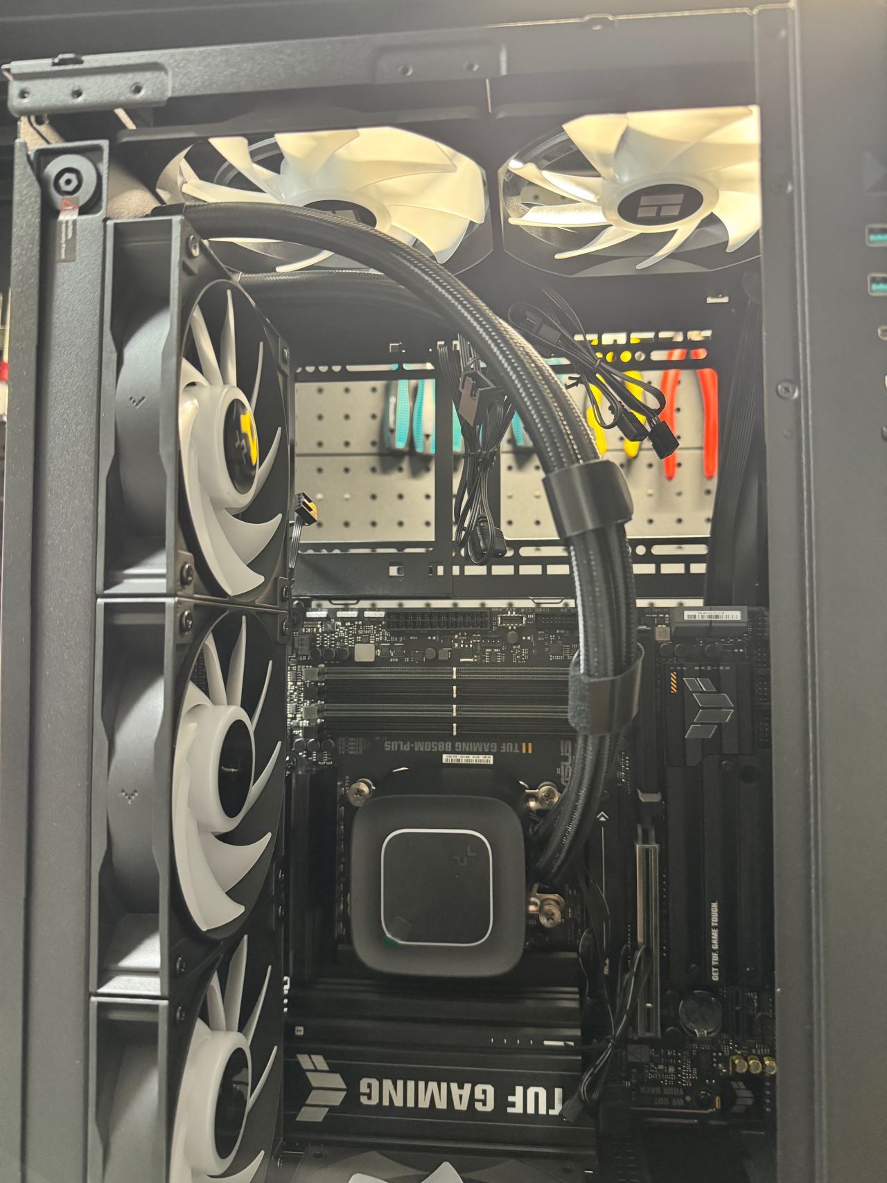 盒友使用的是5070TI顯卡,顯卡供電線,可以走顯卡風扇面,不會與風扇打架,不建議5080以上顯卡,顯卡太厚,供電線無法走顯卡風扇面。