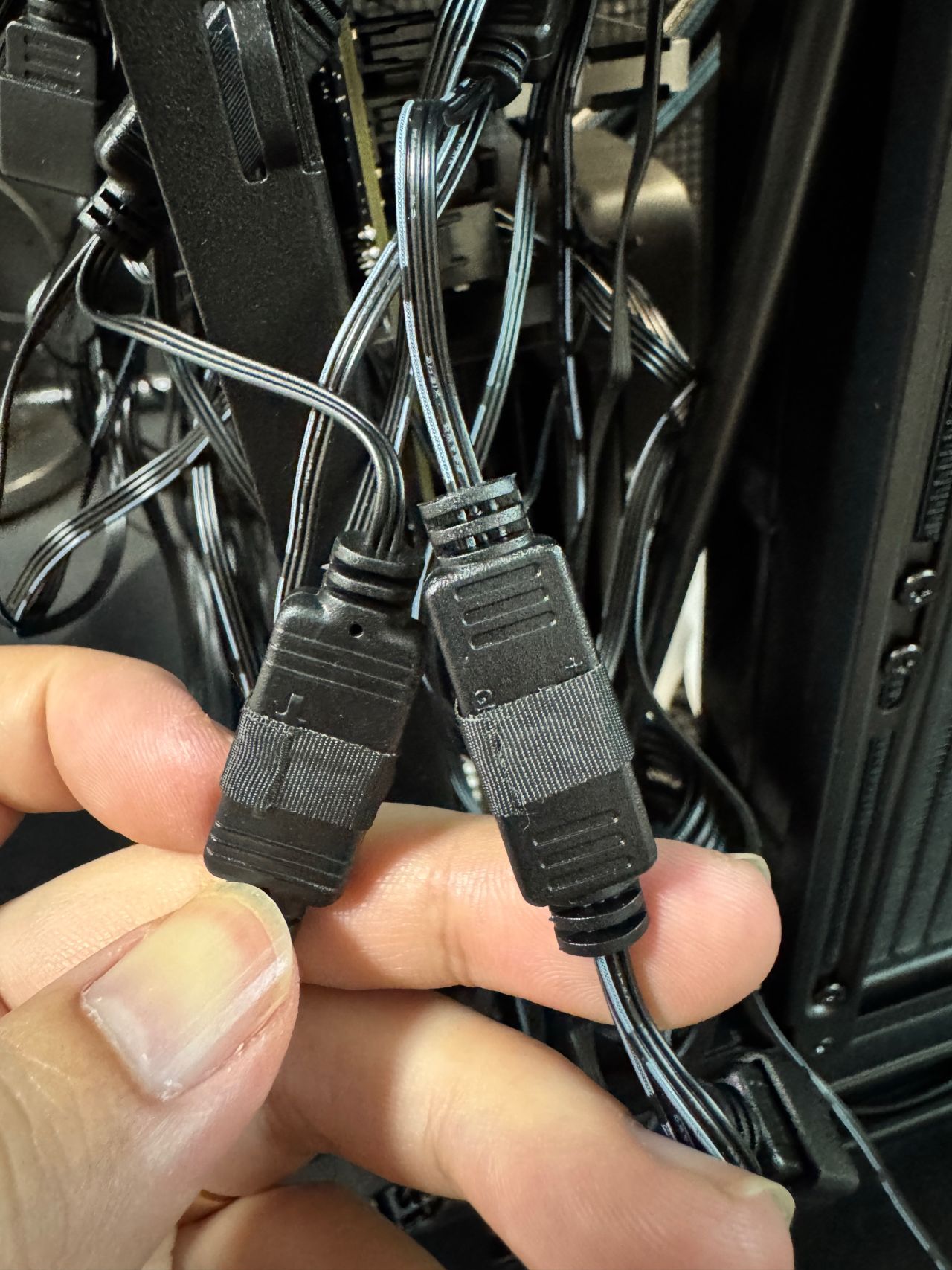 5v3針串聯時,如果後續理線太緊,有幾率給扯開,這裏使用醋酸膠帶固定一下。