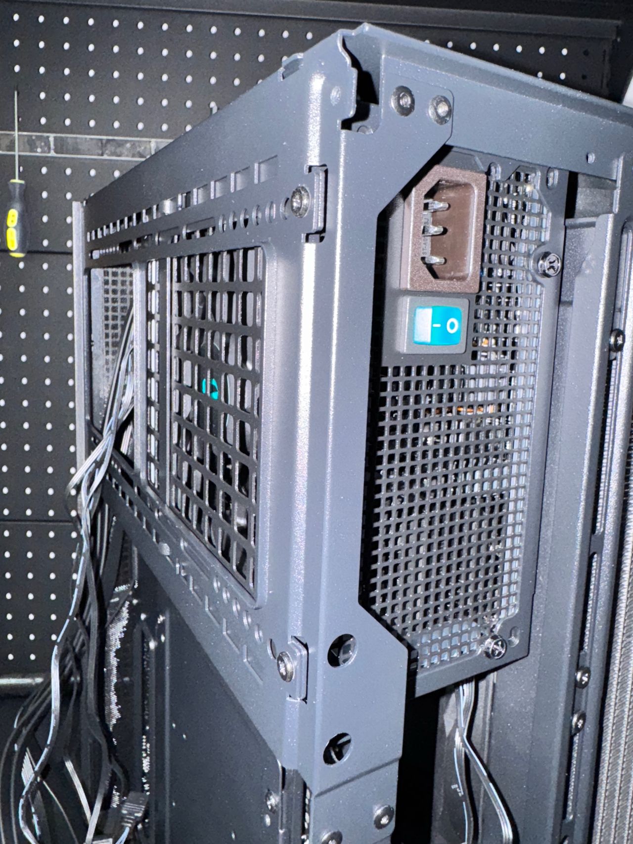 電源風扇位置朝向主機背面,爲進風口,開關面爲出風口。