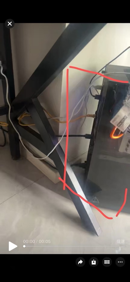 盒友目前的使用環境,右邊是盒友的位置,機箱在地下。