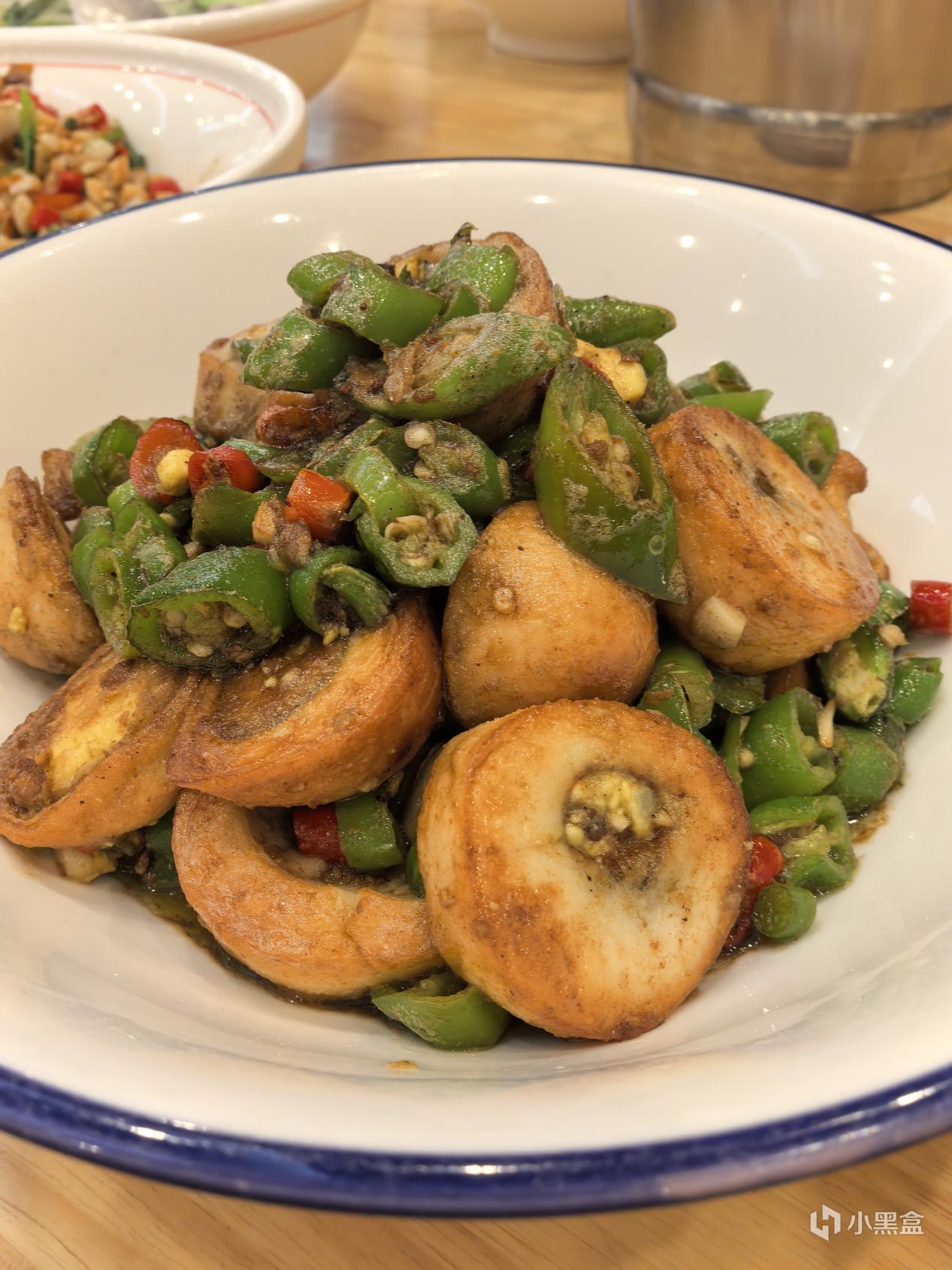 煨蛋带来了不同于脆肚的另一种风味,切成两半的鸡蛋,在青辣椒的激发下呈现出了相当复合的口感,一口咬下去,沙沙的蛋黄会迸发出油润的鲜香,而微微有些虎皮的蛋白上也会混上一些零散的蛋黄,让它不仅保留了蛋白本身的嫩弹,还有了一些绵密的口感与更深入食材当中的味道。