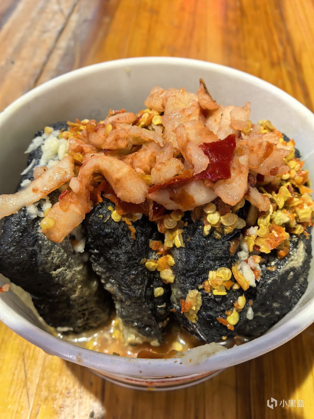 新鲜出锅的臭豆腐有足够酥脆的外壳,但内里却浸满了充实的汤汁,一口咬开便有鲜辣的汁水四溅而出。外壳的酥脆、内里的绵软、萝卜丁的爽脆、汤汁的流淌,既鲜且辣的正宗湖南臭豆腐确实展现出了完全不同于自己老家臭豆腐的魅力,层次复杂的口感与味道完美复合在了一起,足以为味蕾带来最奇妙的冲击。
