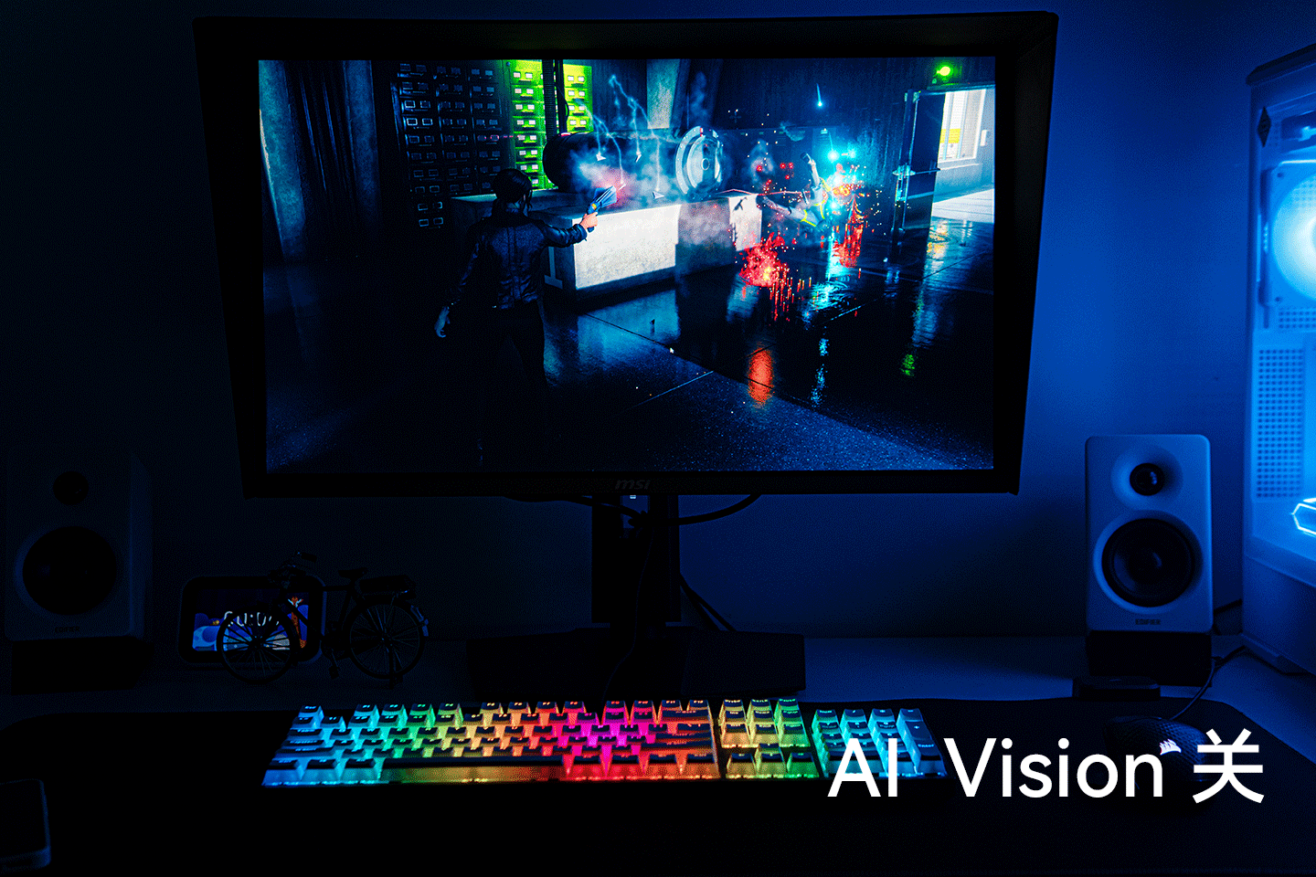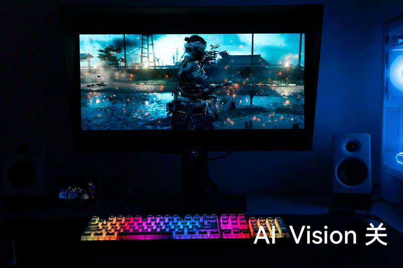 【AI Vision】开启后,自适应调节画面还比较省事,不同游戏都能获得一定的画质提升,用户无需多次修改设置 ,比如《对马岛之魂》人物衣服的纹理细节更清晰了,《控制》室内死角位置变得明亮起来,这种画面差异有点类似HDR和SDR,能实现如此巨大提升还是得益于1000nit屏幕峰值亮度、百万级对比度以及OLED像素自发光的特性。