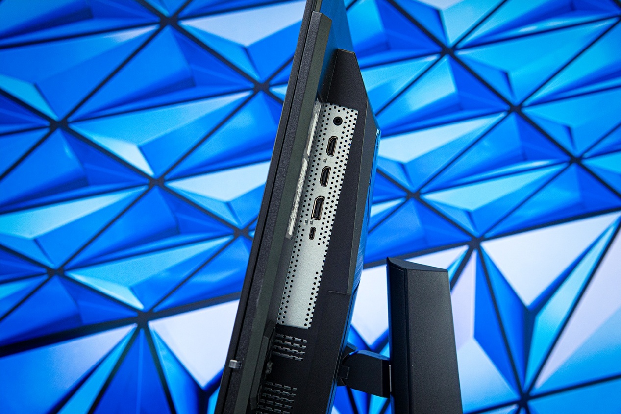 从背后看,微星272QP X50的电竞元素就比较丰富了,微星龙标非常抢眼,背部镜面+磨砂+拉丝工艺组合,质感十足。OLED屏本身具备超薄特性,微星272QP X50侧边厚度仅4.8mm左右,“小书包”则内置了电源适配器、石墨烯散热、电路板等,集成度比较高。