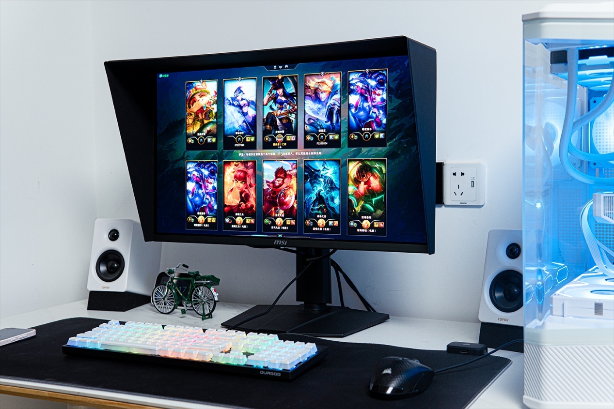QD-OLED材质显示效果出色,唯一被诟病的就是光线良好的环境下,屏幕面板被光线激发会发灰,从而导致黑位不够,而微星272QP X50比较特殊的是自带一个磁吸遮光罩,不仅解决镜面屏反光问题,也解决了QD-OLED发灰问题,使得画面显示极为纯净。