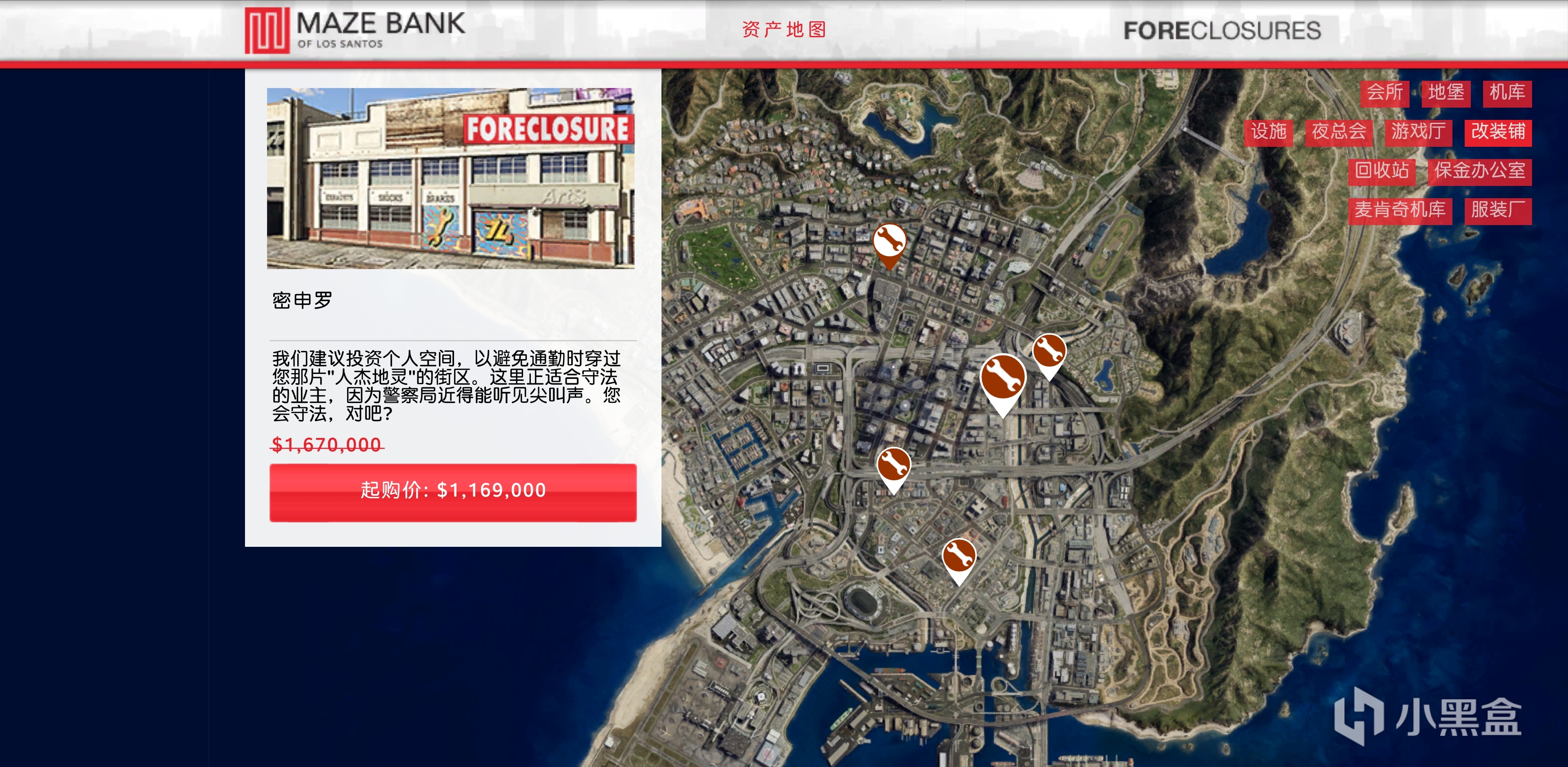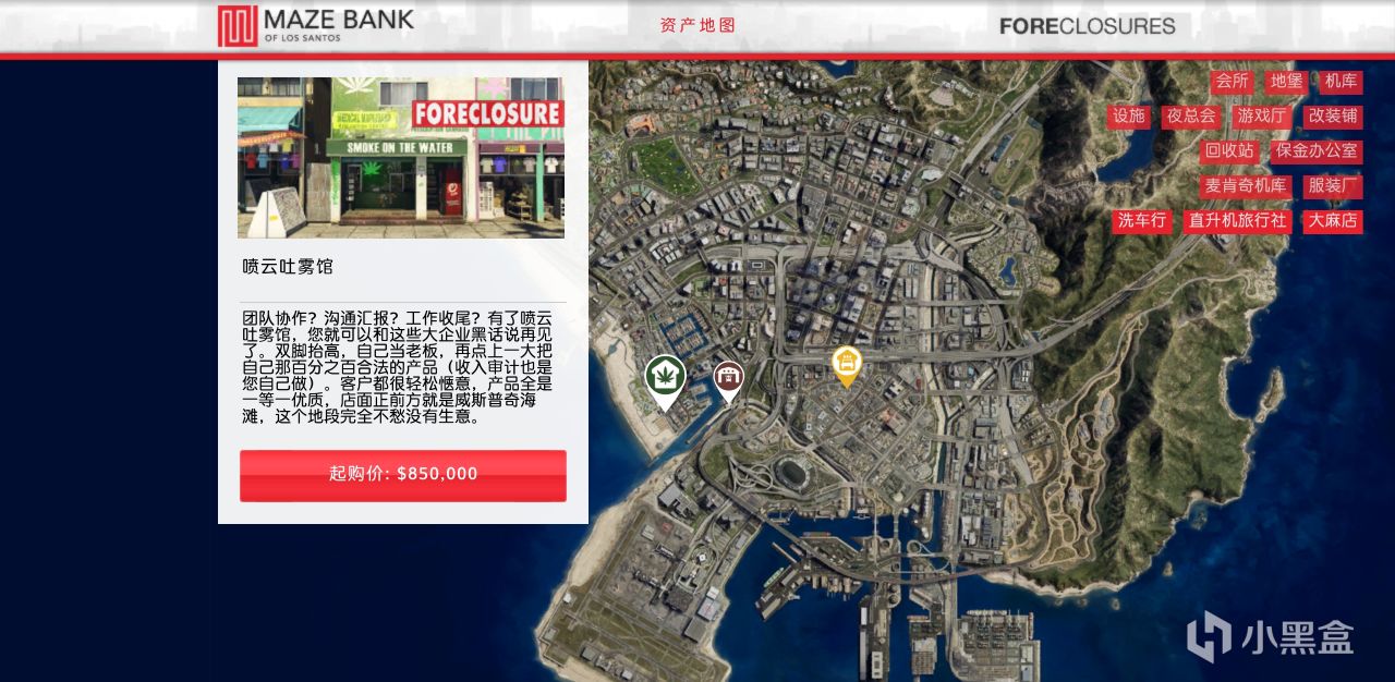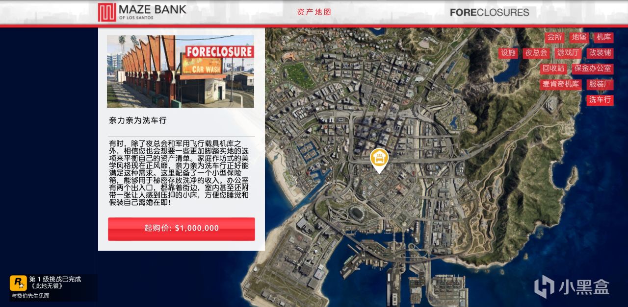 上線後會收到信息叫你來到地圖上這個位置,過一下劇情即可購買新資產,購買完洗車行後還要在洗車行過一下劇情才能買另外2個資產
