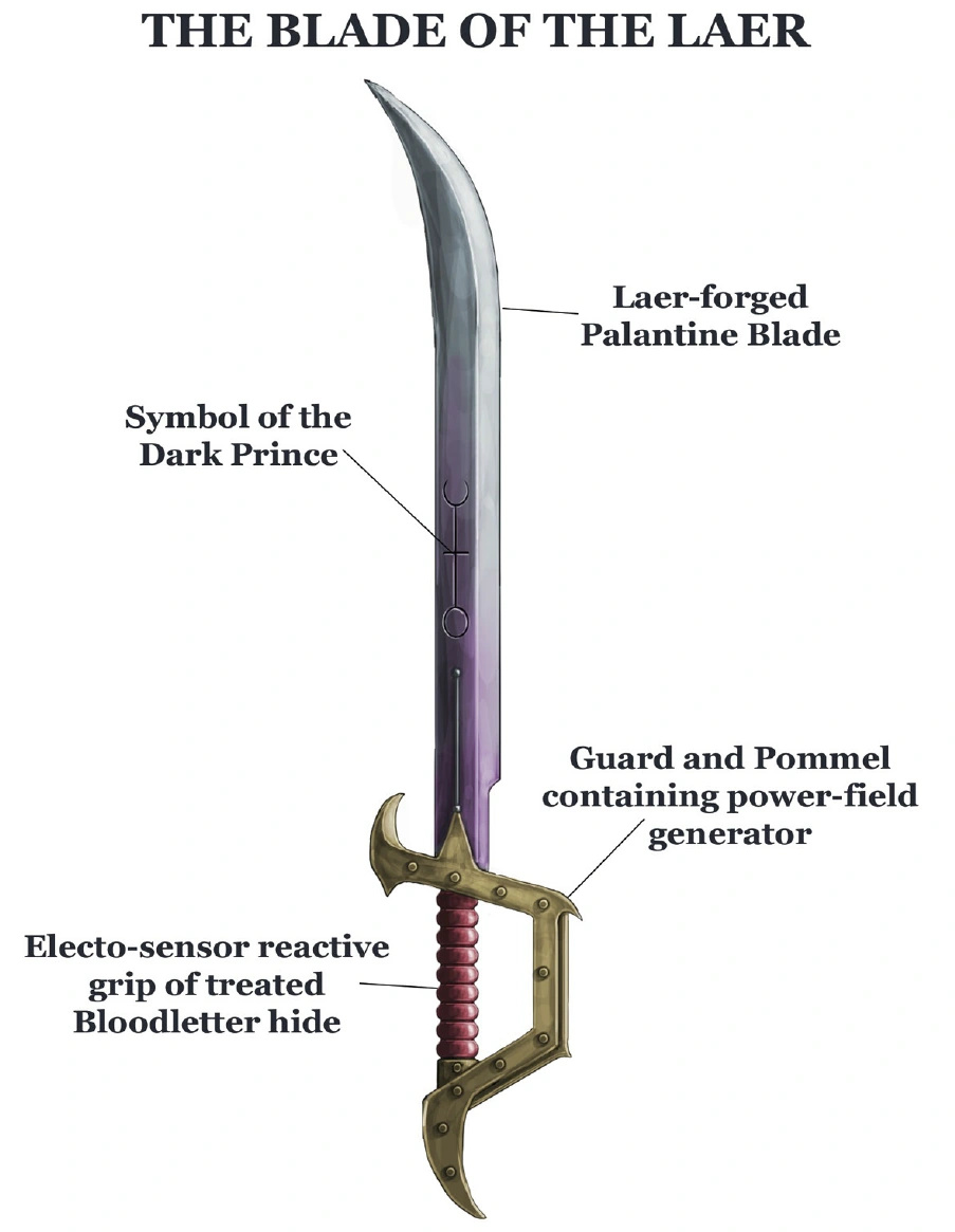 PS:拉尔银剑是福格瑞姆在察觉亚空间对卢修斯的接触后送给后者的,福格瑞姆后续则使用了刺伤荷鲁斯的那把诅咒之刃,这把武器很有实力,说出名字就能直接无视对方防御并且自动分泌目标定制毒素并且还带自动引导。由艾瑞巴斯从Interex人类势力技术博物馆中偷出,后续戴文之上,战帅正是被此把武器刺伤并落入混沌陷阱。