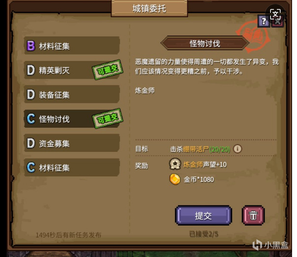 游戏虽然没有规定什么必要的主线,但还是为玩家制定了一些目标,其实也就是一关一关的往下闯就好了。除此之外还有一个城镇委托系统,这个我个人认为比主线还要重要。首先,通过委托玩家可以获得金币、材料以及声望。声望可以让你解锁更多东西,以及提高炼金师对你的好感,你可以在他那里购买更加强力的物品。