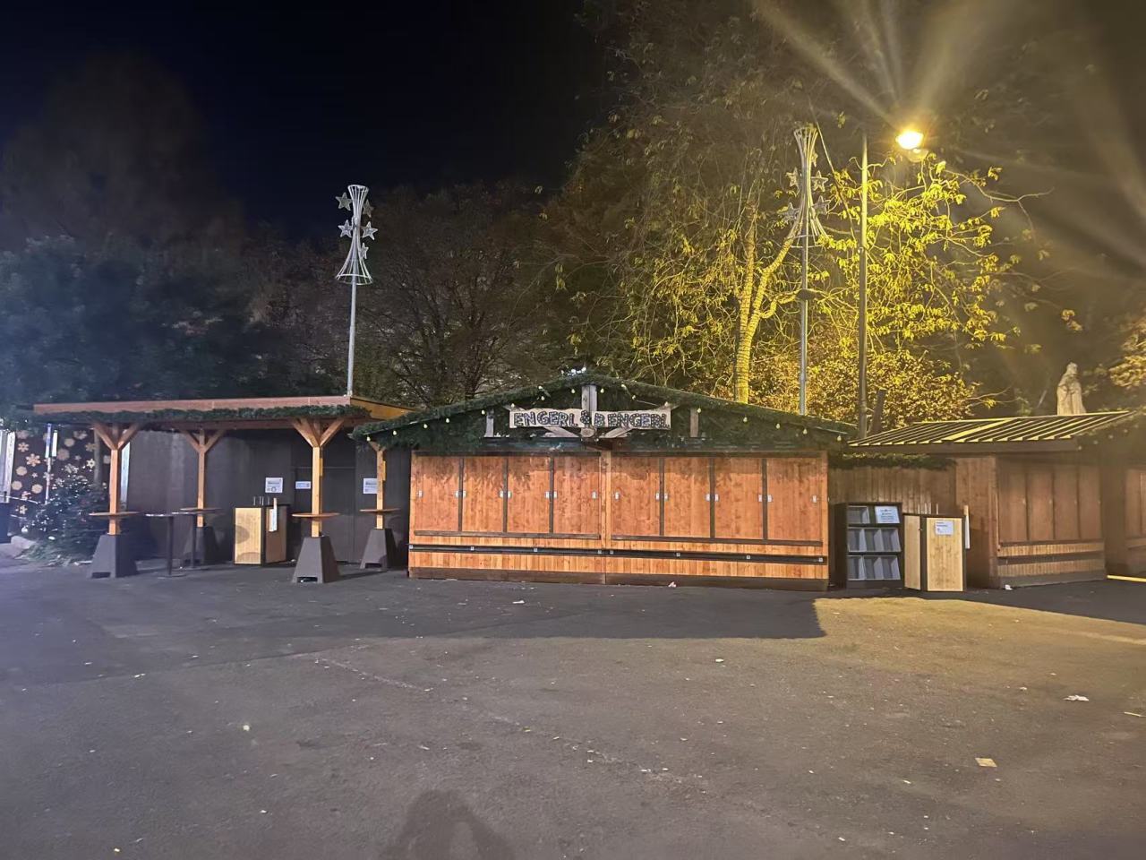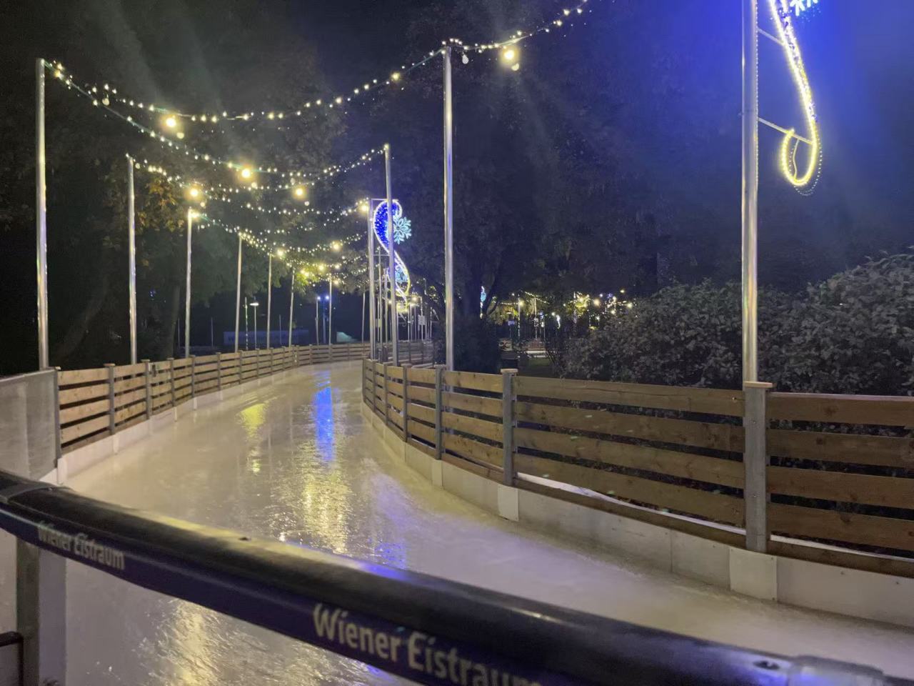 此时的公园是圣诞节主题(本来万圣节和圣诞节时间间隔也不大),站在马路的另一头都能清楚地看见公园里的旋转木马等娱乐设施。