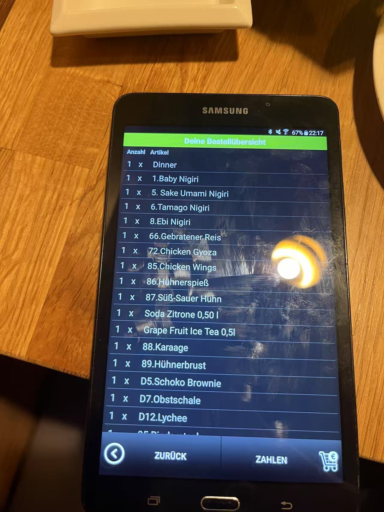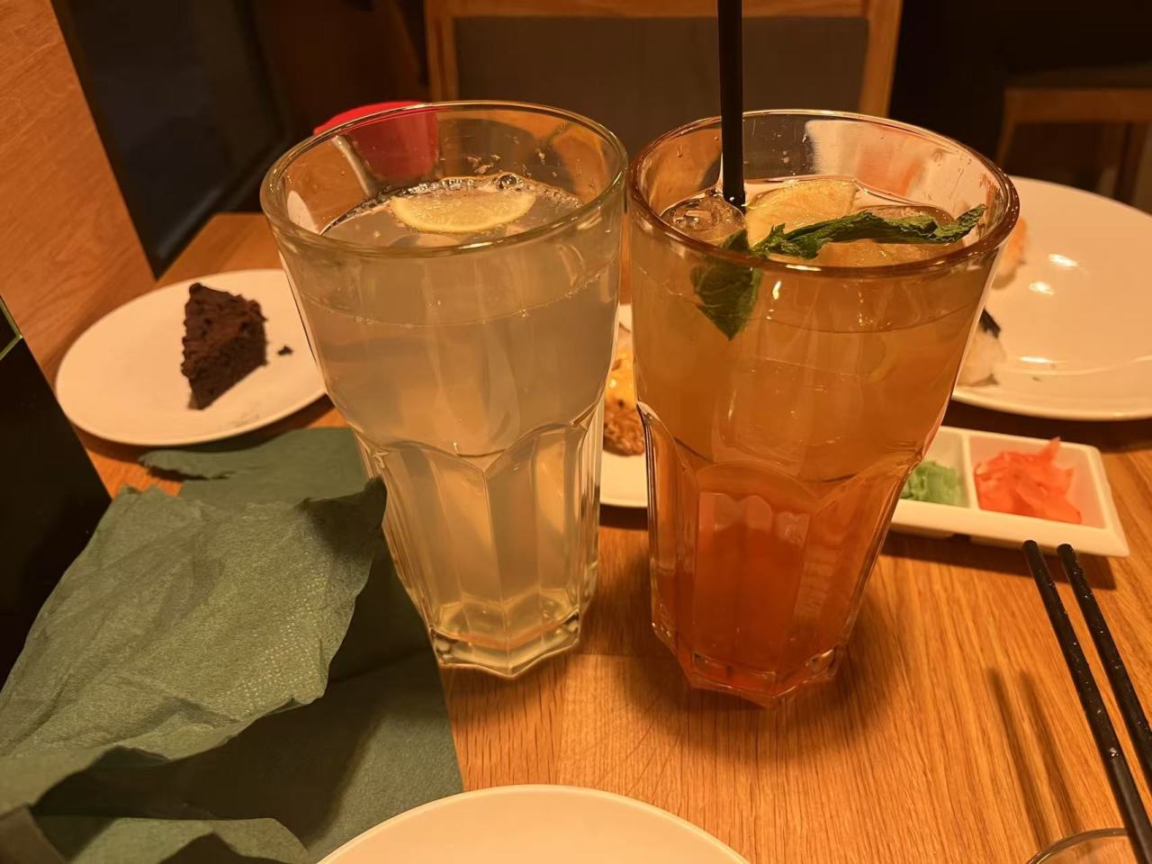 路过巨幅广告后又过了二十分钟,我总算找到了那家日料店并入座,服务员都是欧洲人。欧洲的大部分日料自助店都是食物畅吃,但酒水另外收费。