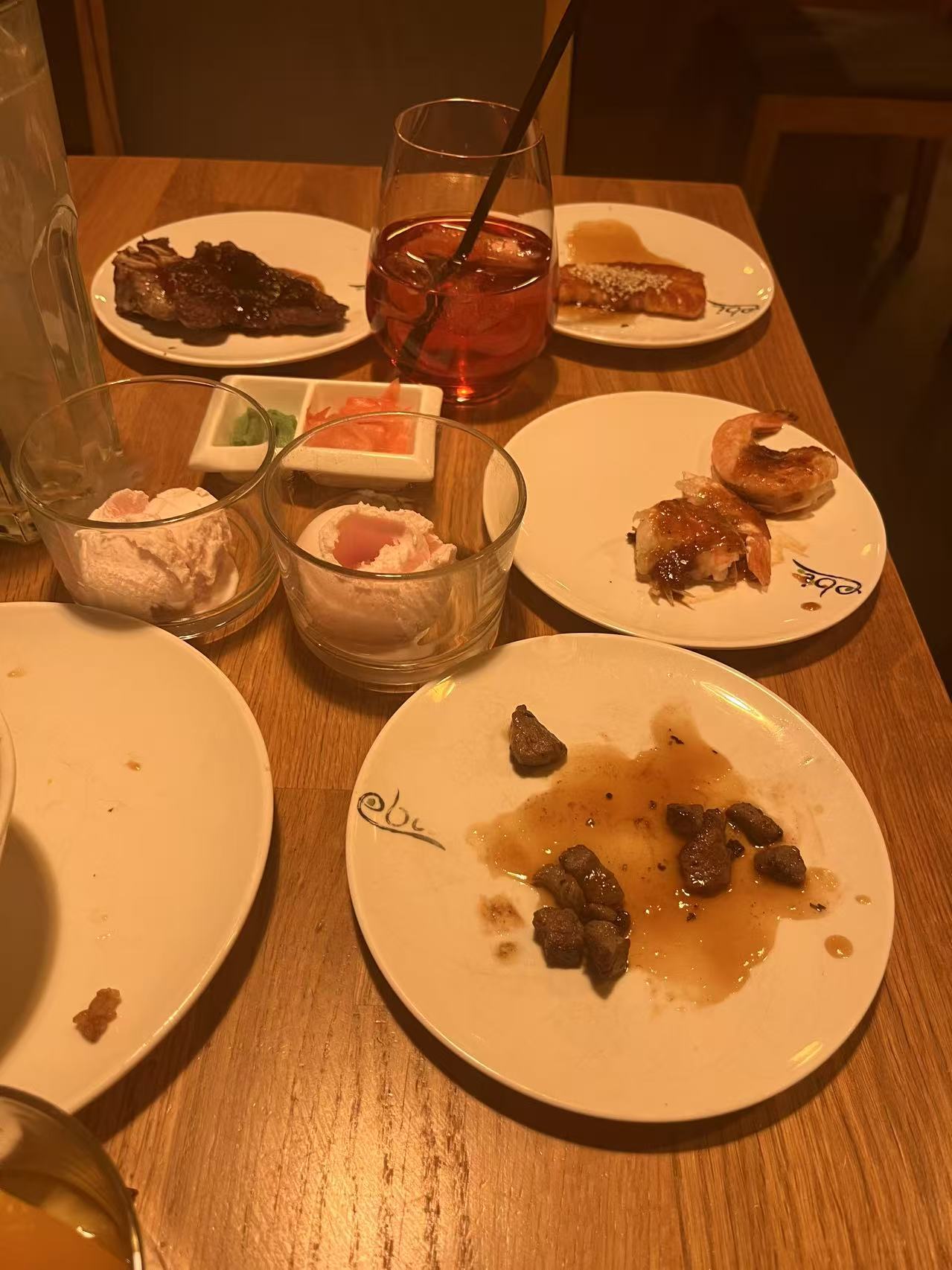 那天饿坏了,胃口不错,吃了三十多道菜,点了三杯饮料。