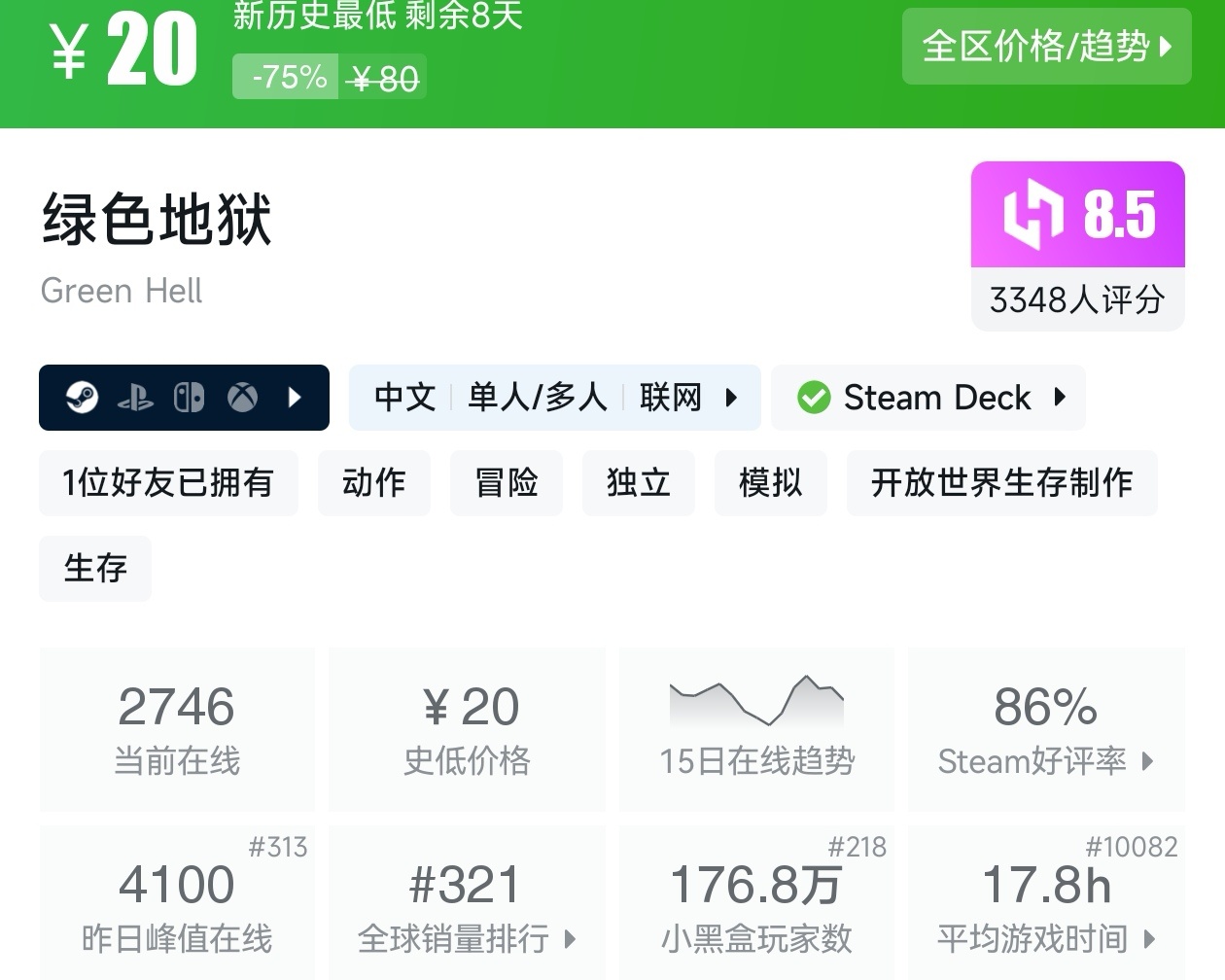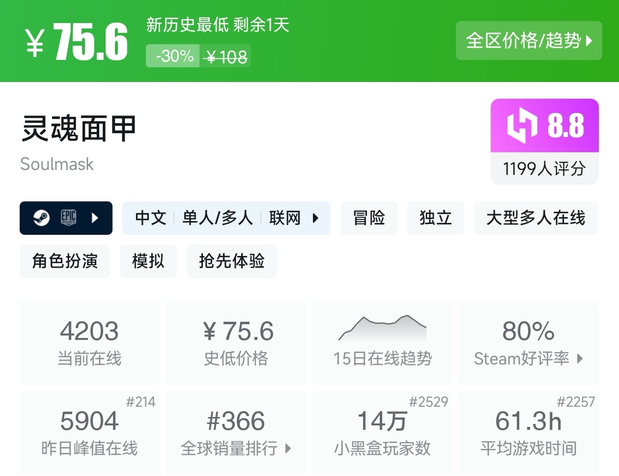 大家好,没错,又是我,你们的老朋友亦然,最近这不是夏促快开始了,每次大促前,都有很多厂商会抢跑夏促,这次也不例外,现在新史低的游戏,夏促就注定不会更低,其实新史低的游戏买起来最有安全感,因为很长时间都不会更低,我将为各位进行一个汇总,希望我的汇总,能够帮助各位盒友挑选心仪的游戏。