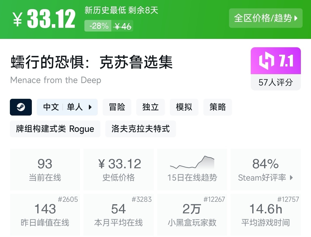以上就是这期的折扣汇总,几乎涵盖了近期所有的新史低游戏,足足用了我一个小时。