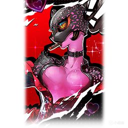 深红色高领皮质紧身衣,胸前采用拉链设计,领口线条利落,搭配粉色手套和褐色过膝长靴,整体形象体现豹的敏捷和火焰般的激情。