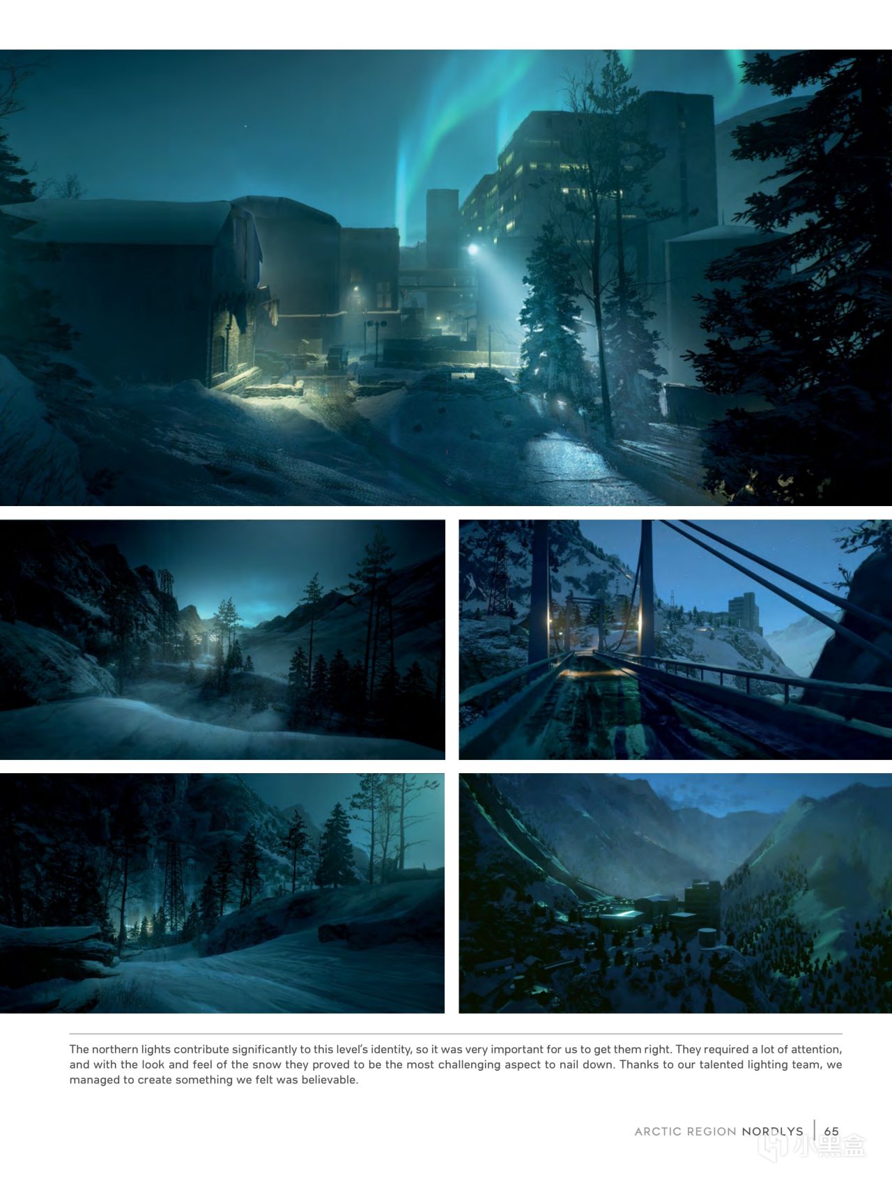 北极光在这个关卡中占有重要地位,因此我们非常重视将其呈现得正确。雪的外观和感觉则是最具挑战性的部分。多亏了我们才华横溢的灯光团队,我们成功地创造出我们认为是可信的效果。