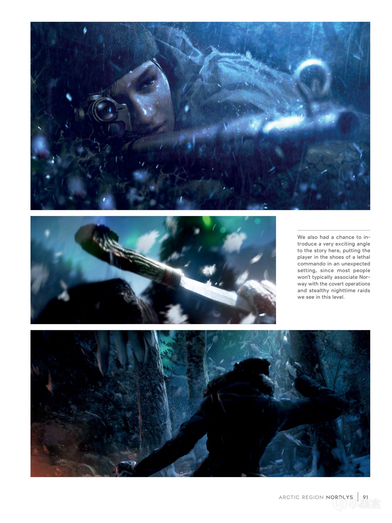 我们还借此机会引入了一个非常激动人心的故事角度,让玩家扮演一个致命突击队员,置身于一个意想不到的环境,因为大多数人通常不会把挪威与我们在这个关卡中看到的秘密行动和隐秘夜间突袭联系起来。