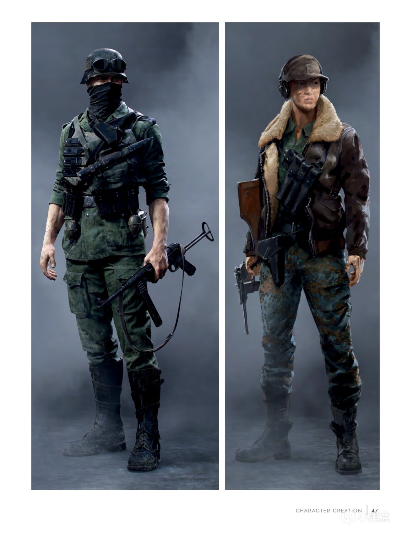 我们在一个模特身上构建我们理想的造型和体型,模特穿着混合了复制品、定制物品和实际军用装备的服装,这种独特的过程充分利用了概念和角色艺术家的优势,将它们在现实生活中结合在一起。