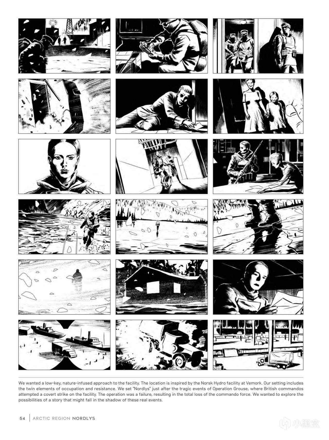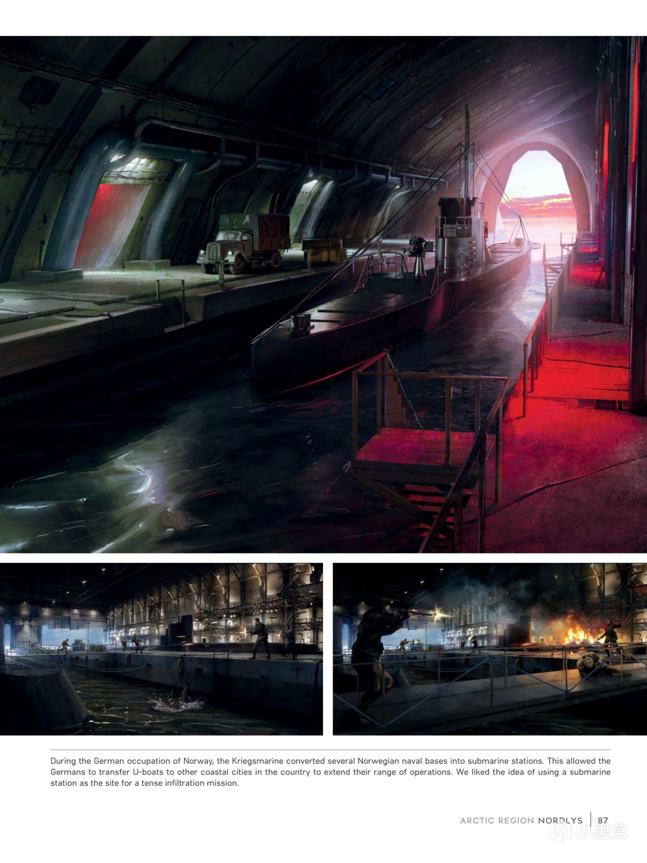 我们想要一种低调、融入自然的设施设计。这个地点的灵感来源于挪威的诺斯克氢气设施。我们的环境包括职业和抵抗这两个元素。我们将“北极光”设定在“突击行动”悲惨事件发生之后,英国突击队试图对该设施进行秘密打击。这个行动失败了,导致突击队全军覆没。我们想探索一个可能在这些真实事件阴影下发生的故事。