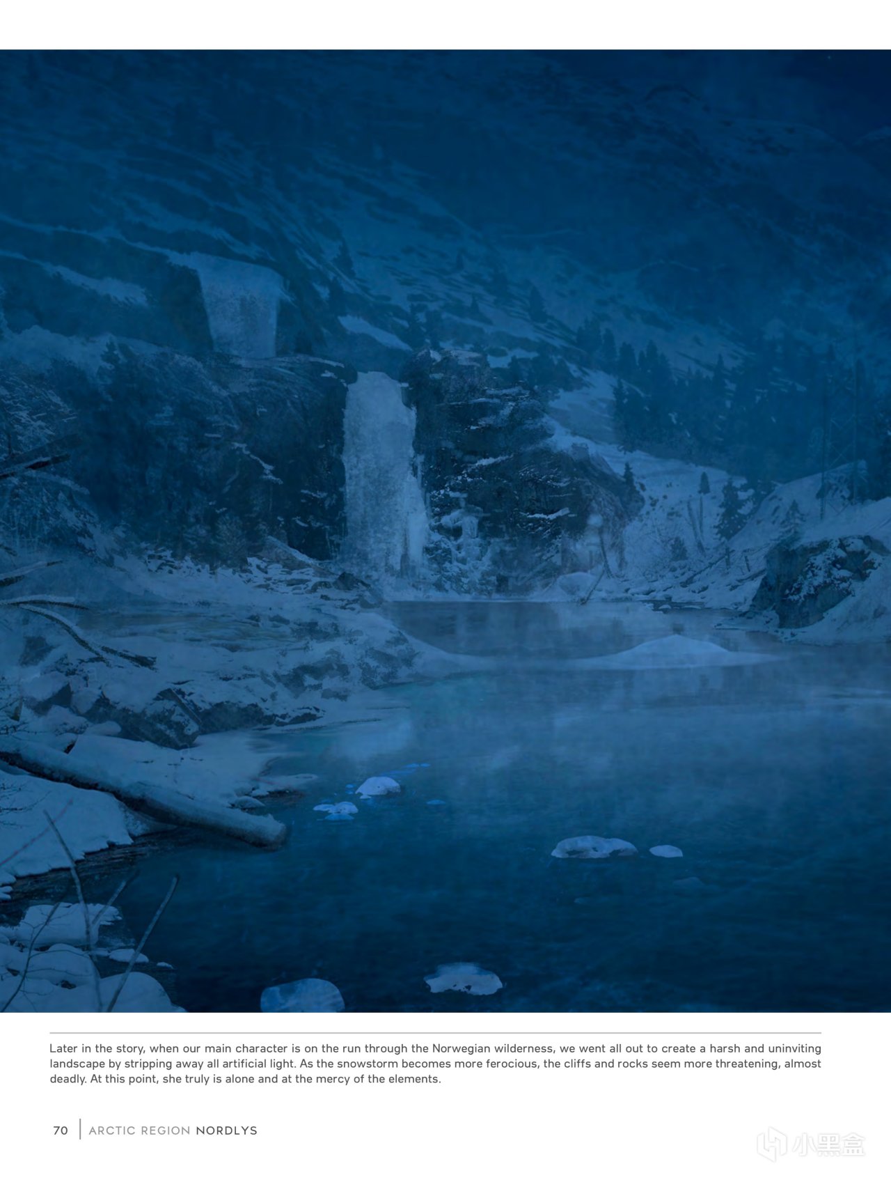 在故事后期,当我们的主角在挪威荒野中逃亡时,我们全力以赴创造出一个严酷而冷漠的景观,剥夺了所有人造光线。随着暴风雪变得更加猛烈,悬崖和岩石似乎更具威胁,几乎致命。此时,她确实是孤身一人,任由自然摆布。