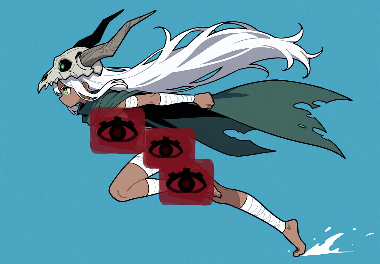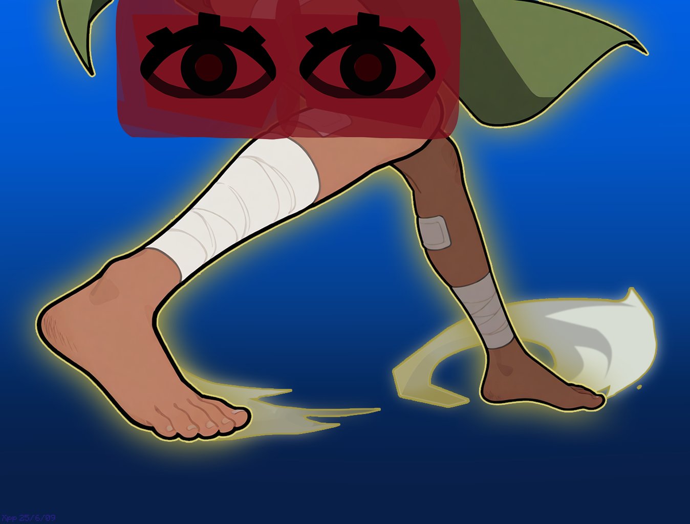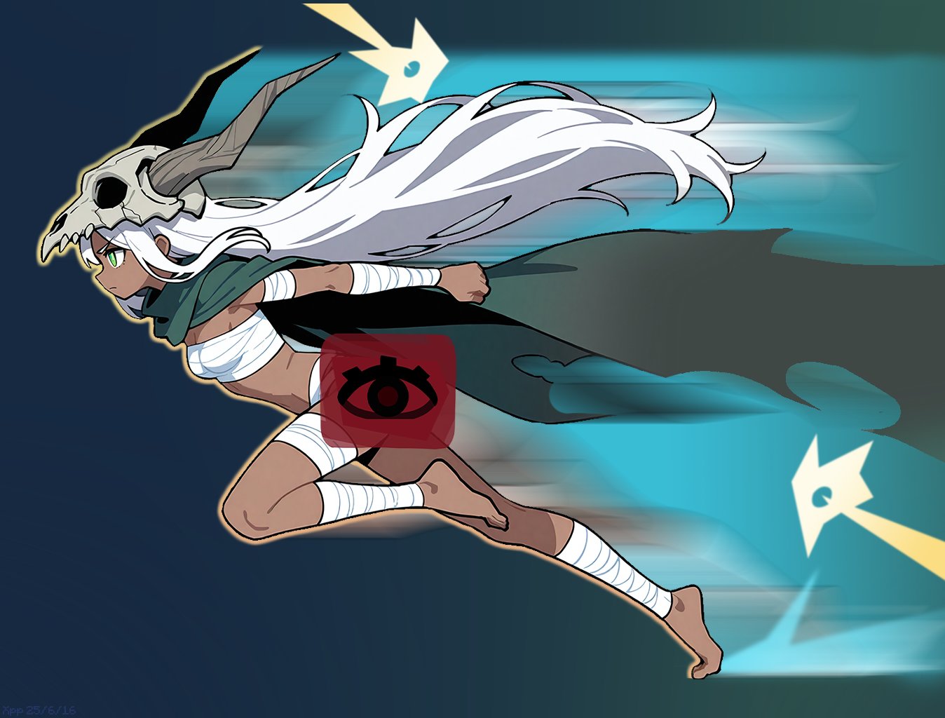 從另一張圖裏弄來了披風,讓其融合到圖中。然後加上了原版的類似子彈飛行的軌跡,繪製背景,給整體加上黃色高光。