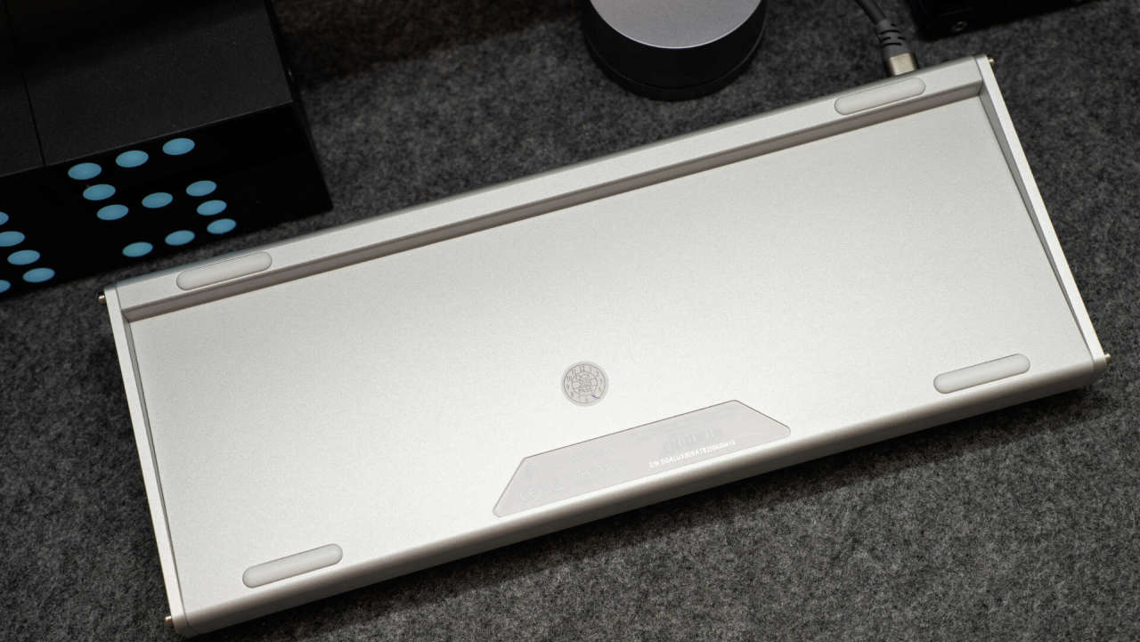 键盘通体是全铝CNC一体成型外壳,机身透着高级的哑光磨砂质感,更提供了出色的结构强度和耐用性,背部的倾斜角度,在打字和游戏时使用都比较舒适。