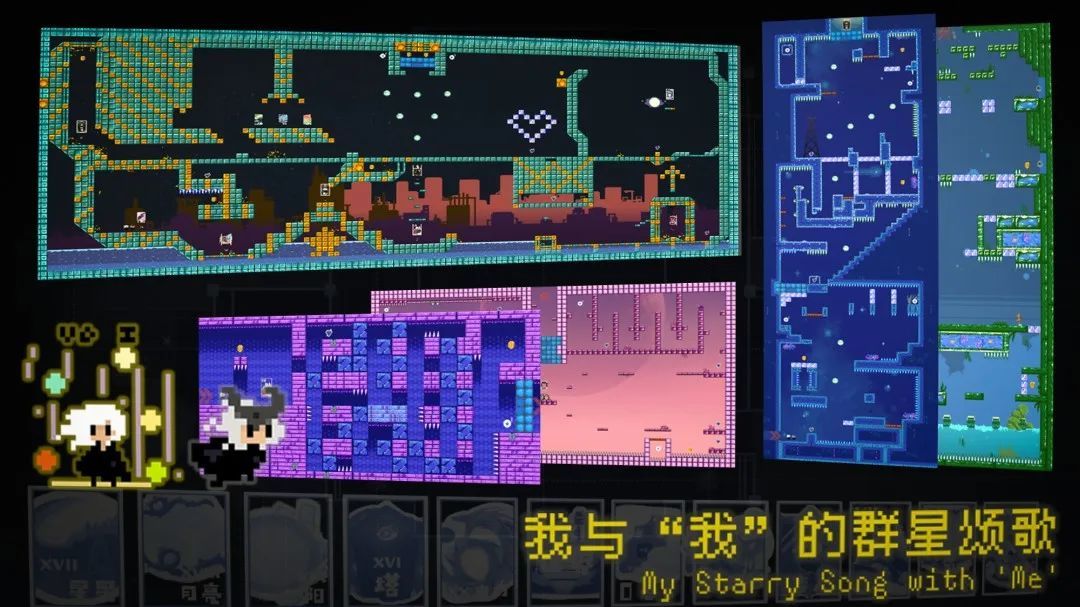 小王把自己學到的“強化學習”知識應用到了Mini Game中,他的畢業作品名爲《我與“我”的羣星頌歌》,做了一年半的時間才最終完成。這是一款在2D平臺跳躍玩法中融入了彈珠射擊元素的像素風橫板闖關遊戲,遊戲中加入了雙子角色,該角色會作爲強化學習裏的智能體跟隨主角行動,並解鎖各種技能。除了“強化學習”的技術應用之外,小王也賦予了遊戲很強的精神內核和自我表達:在充滿未知的宇宙關卡中,主角與自己的雙子角色通過對話不斷探索自我、面對內心。