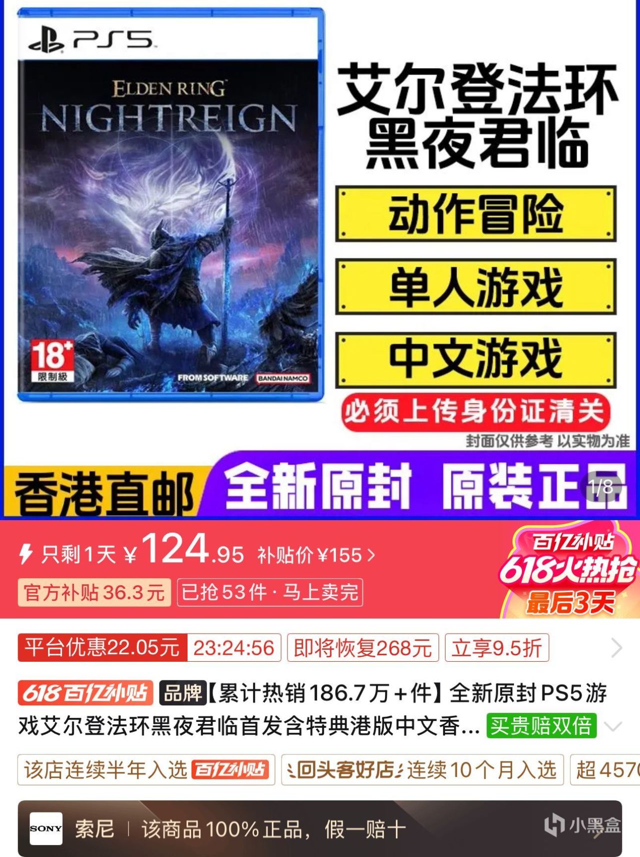 3.PS5《艾爾登法環:暗影君臨》港版中文124.95元全新包郵,比我上次推薦又便宜了10元,個人感覺一路走低,說不定哪天99元全新包郵,屆時感興趣的朋友建議再忍忍,百元以下價格買一張實體碟玩玩還是可以的。
