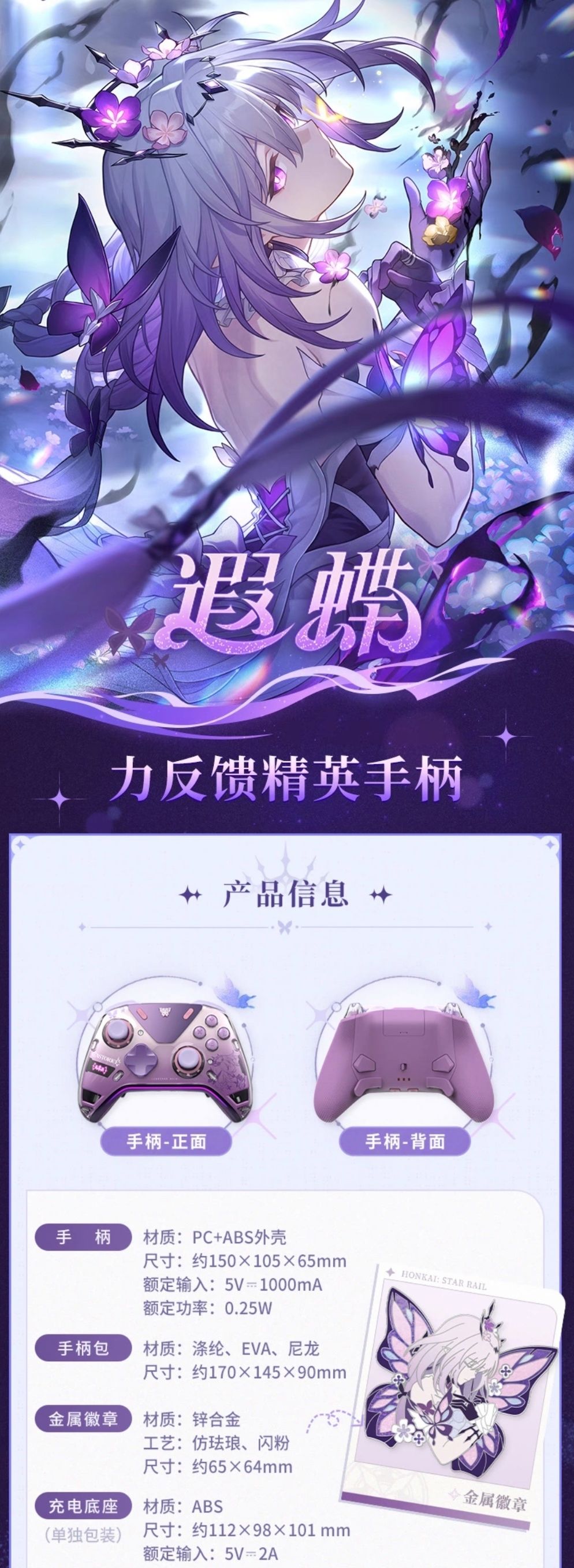 米哈遊與飛智合作,宣佈推出一款遐蝶力反饋精英手柄,這款手柄實際上就是飛智八爪魚 5 的聯名定製款,引入《崩壞:星穹鐵道》中遐蝶 IP 元素,本體加手柄包加金屬徽章定價爲 799 元,帶底座的套裝爲 899 元,將於今年 10 月開始發貨。