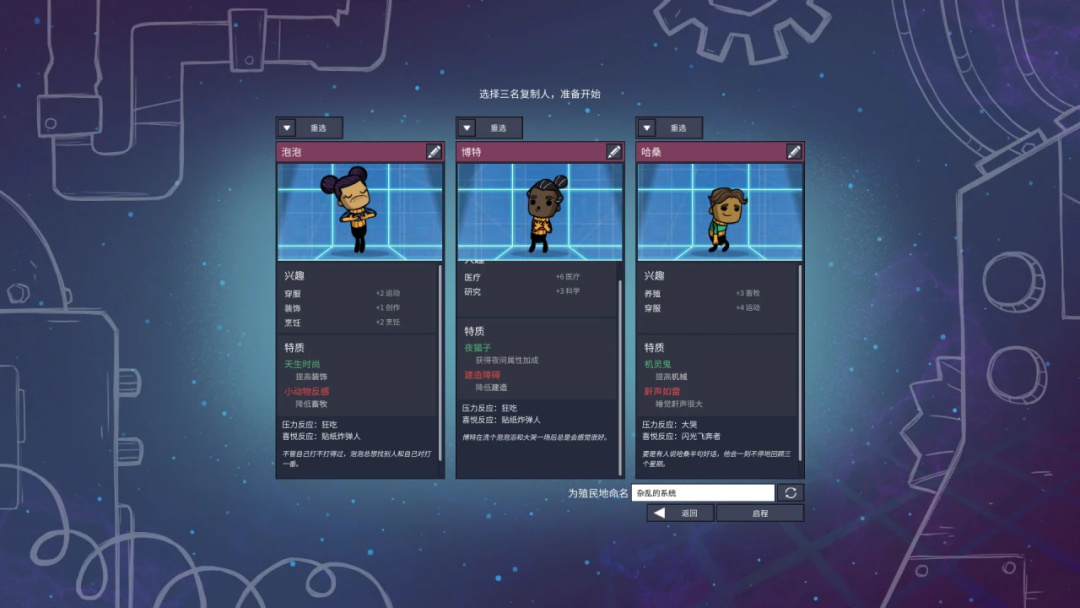 你的手下是一羣“複製人”,每個都有獨特的性格和技能: