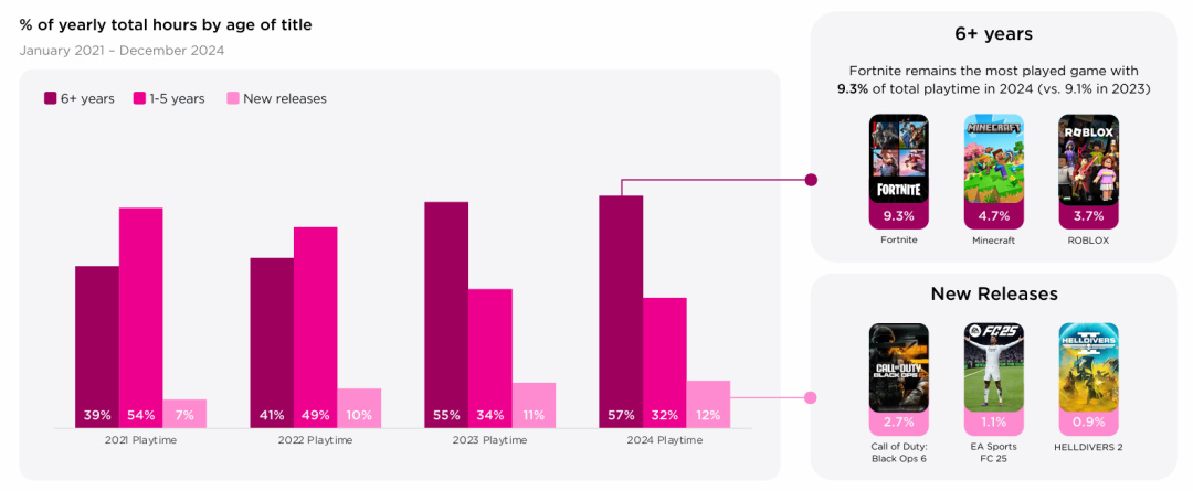 其二,在Newzoo發佈的《2025 PC與主機遊戲報告》中提到,過去6-7年佔據射擊賽道最大份額的大逃殺玩法,其玩家市場正在逐漸流失,流向了其他射擊和RPG品類。換言之,射擊賽道步入了玩法迭代期,可能會出現引領未來十年射擊市場發展的新玩法產品。