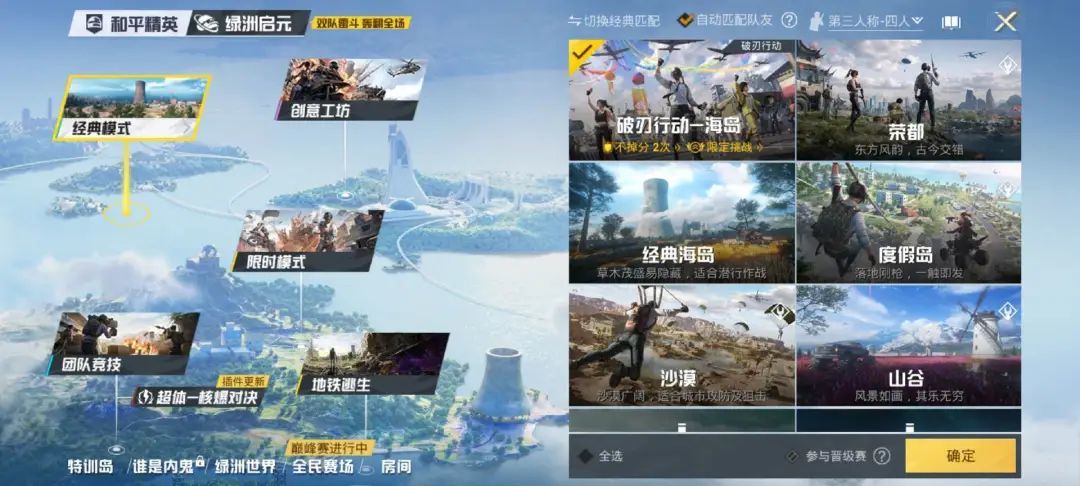在保證產品品質與體驗流暢性的基礎上,和平進入PC賽道也有着其獨特的優勢,即在玩法內容層面。基於六年的技術與玩法積累,《和平精英》有着很強的玩法內容輸出能力。例如目前包括經典模式(BR)、團隊競技、地鐵逃生等都已入駐PC模擬器。
